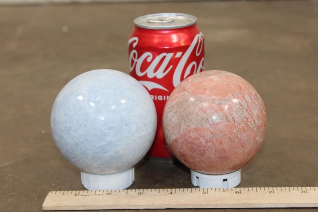(1) BLUE CELESTITE Mineral Sphere and (1) PEACH MOONSTONE Mineral Sphere (ONE$)