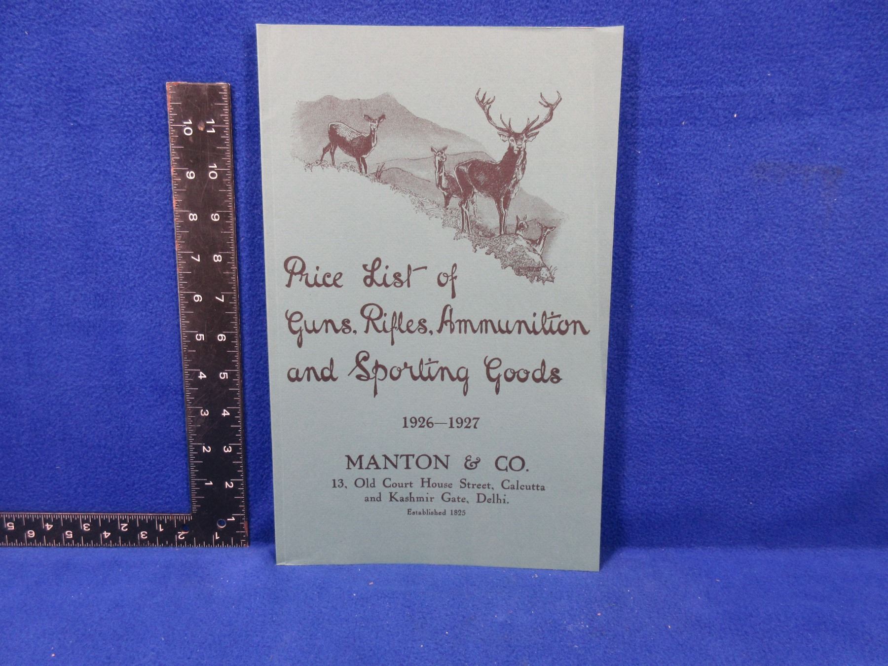 1 Book - Price List of Guns, Rifles, Ammunition and Sporting Goods - 1926-1927 Manton & Co.