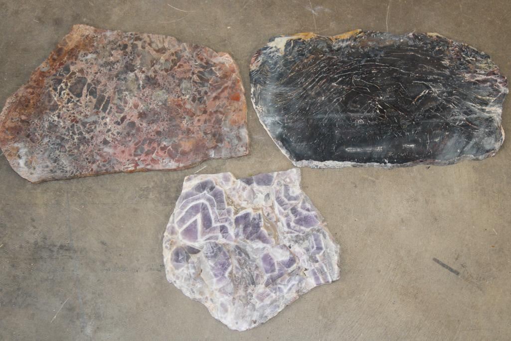 (1) Brecciated Jasper, (1) Petrified Wood, and (1) Dream Amethyst Mineral Slice (ONE$)