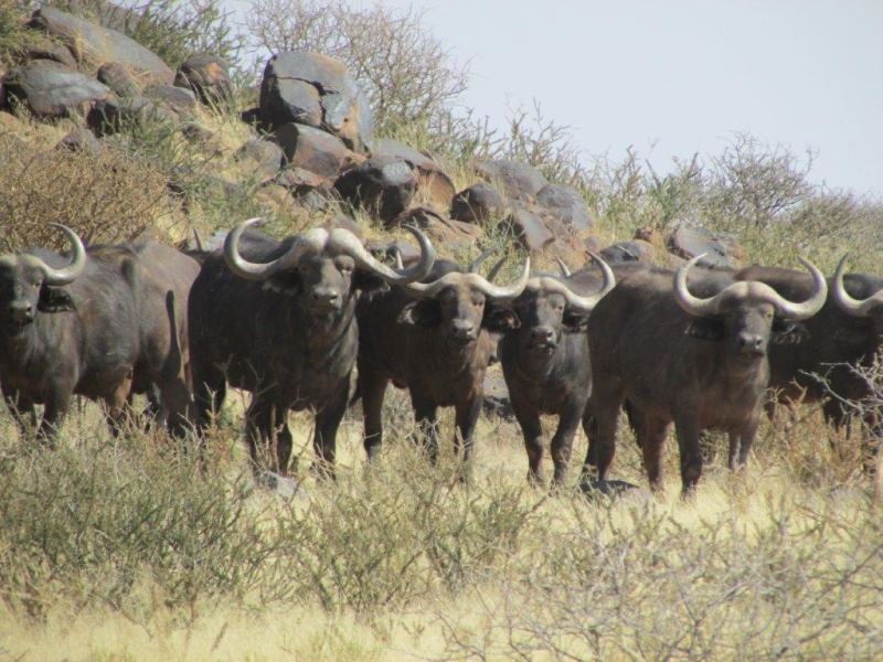 Animals donated are very typical of these areas and we have lots of buffalo and normal plains game in this area. If hunters wants to upgrade to buffalo bulls we can offer this to them at US$5 900 each. Hunters will fly in to Bloemfontein where we will meet them and then transfer them by road, about 3 hours, south, to the hunting area. This area is about 6 000 hectare big with hills scattered over the whole area, some ravine areas with lots of acacia trees and then flat open savanna. This area is bordering the second biggest Lake in South Africa, the ‘GARIEP DAM” and our biggest river the Orange river.