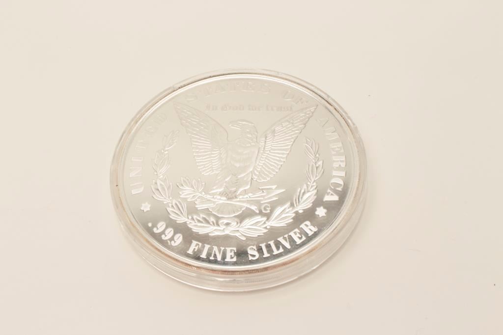 1 lb. silver die struck over size liberty .999 silver coin. Mint. Old collector’s horde. Est.: $200-$400