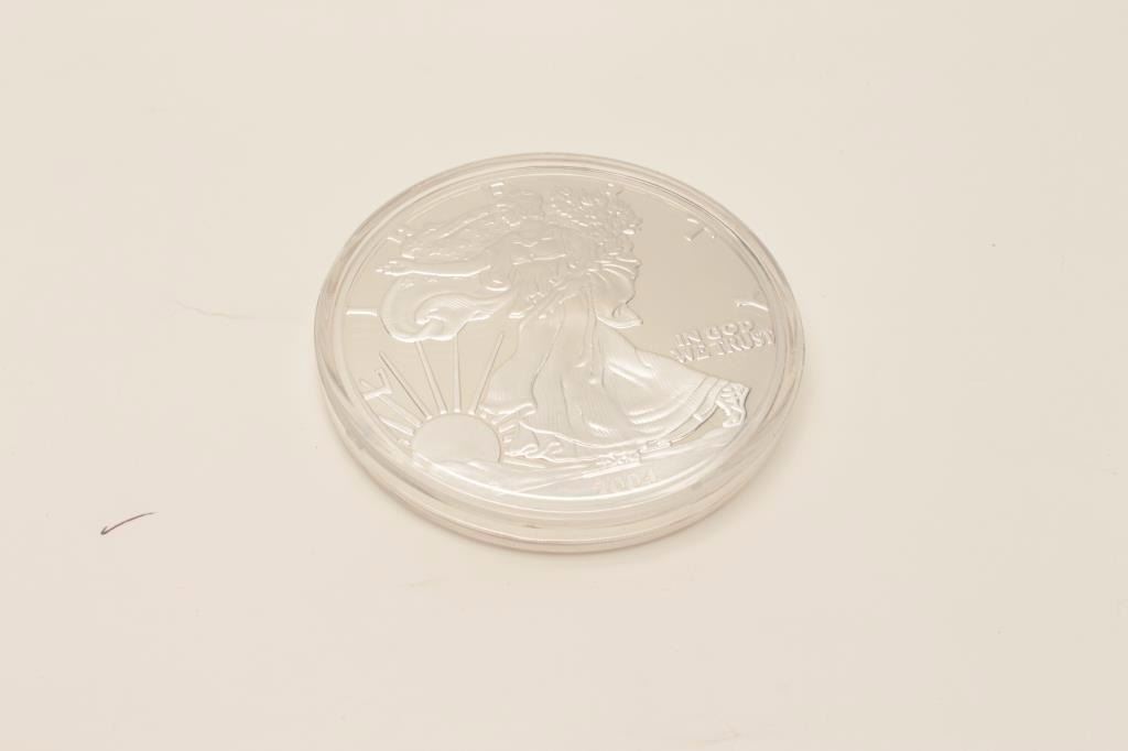 1 lb. silver die struck over size liberty  .999 silver coin. Mint. Old collector’s  horde. Est.: $20