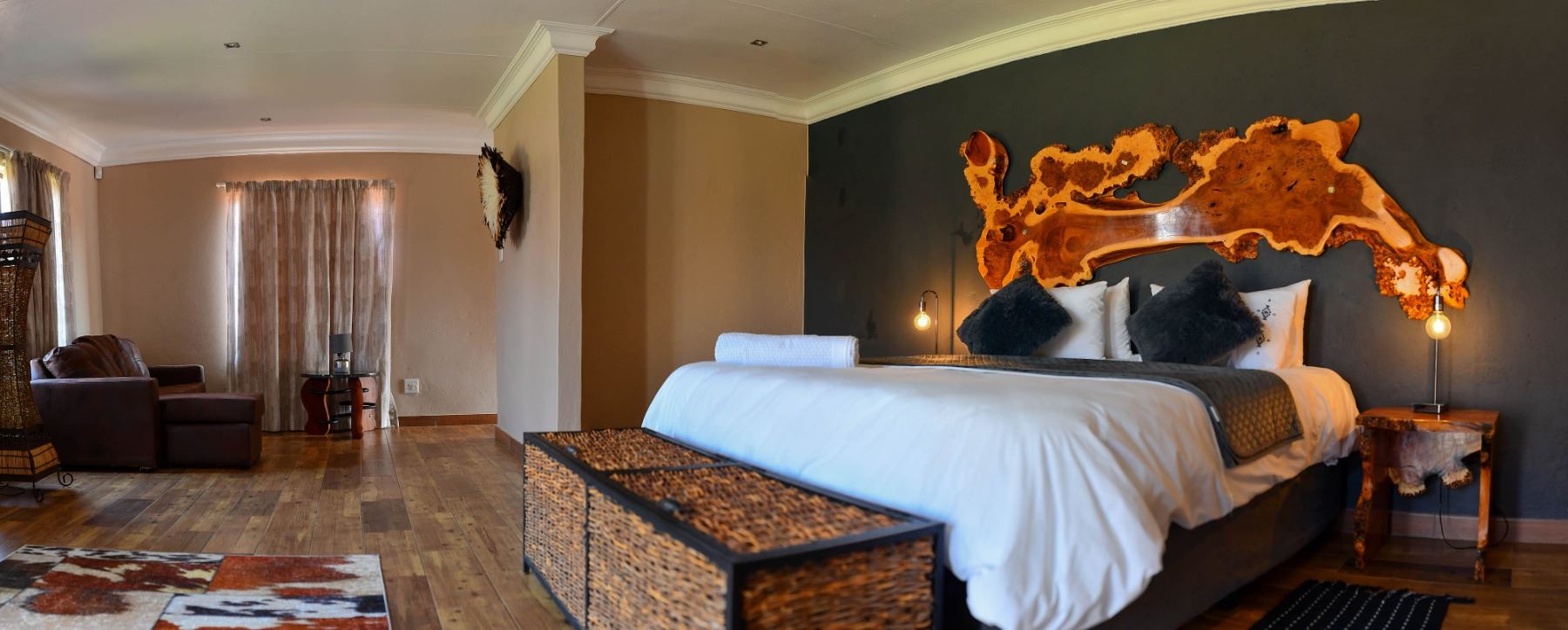 Daily fee includes comfortable air conditioned accommodation, laundry service, meals, basic bar/drinks, hunting vehicles, trackers, skinners, field prep of trophies. 1x1 for Cape Buffalo hunt and 2x1 for plains game hunts with professional hunter/guide.