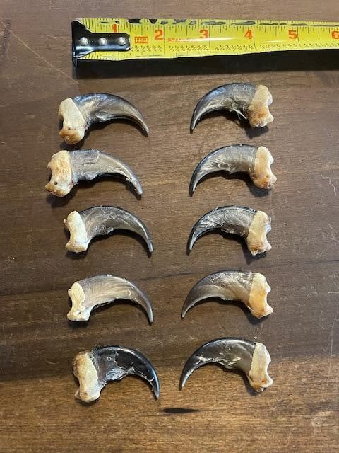 10 XXL BLACK BEAR Front Claws. They measure approximately 1.5" to 1.75" Long (in a straight line). These are great for jewelry making or Native American and Taxidermy Crafts. TAXIDERMY CLAWS