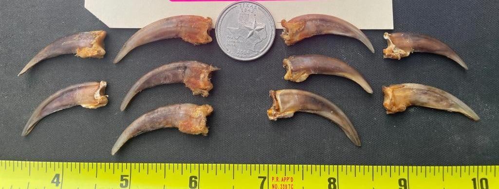 10 North American BADGER front claws. They measure 1.25" to 1.5" Long each. Great taxidermy for crafts or jewelry making (ONE$). TAXIDERMY
