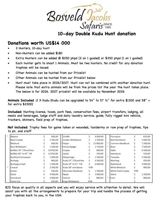 • Hunt must take place in 2026/2027. Hunt can not be combined with another donation hunt.