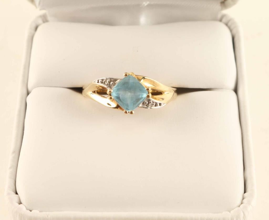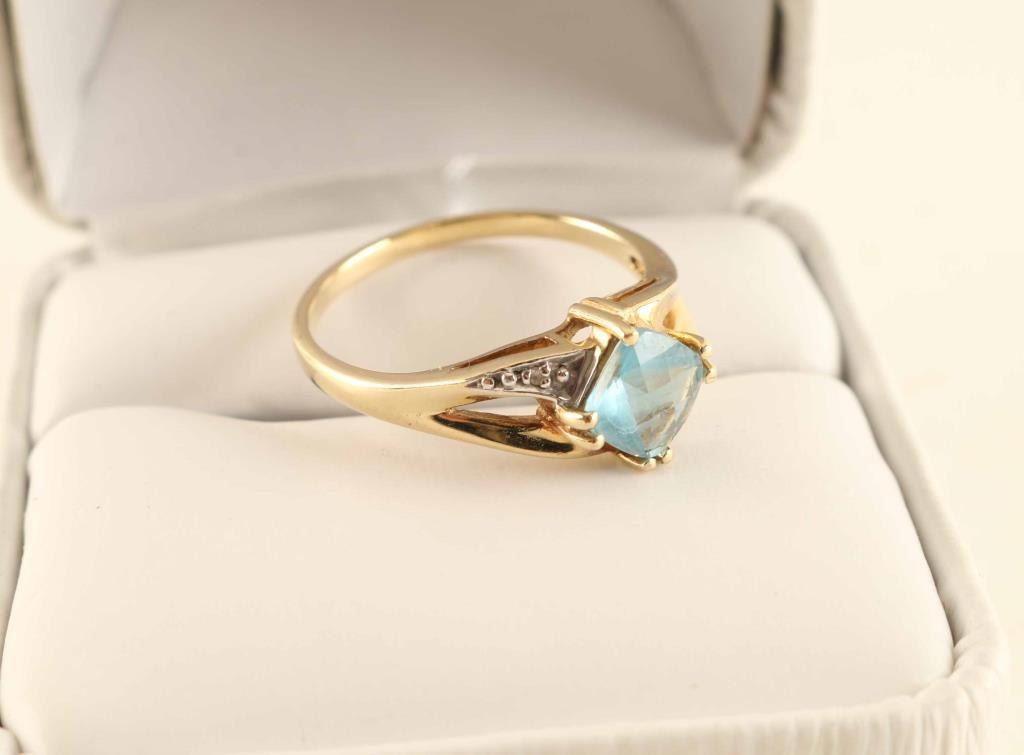 includes a piece of Aquamarine set in a 10K ring.