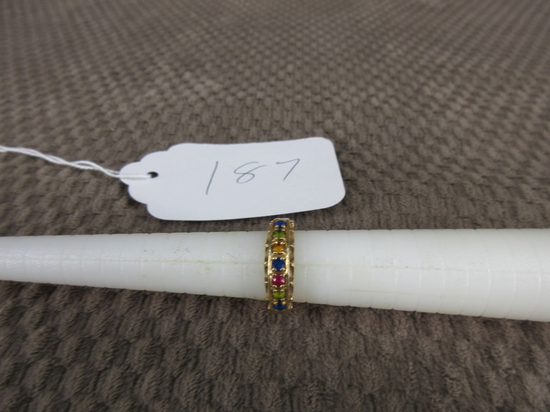 10KT Gold Family Ring with 7 Stones - Total weight is 4.05 grams, size 7