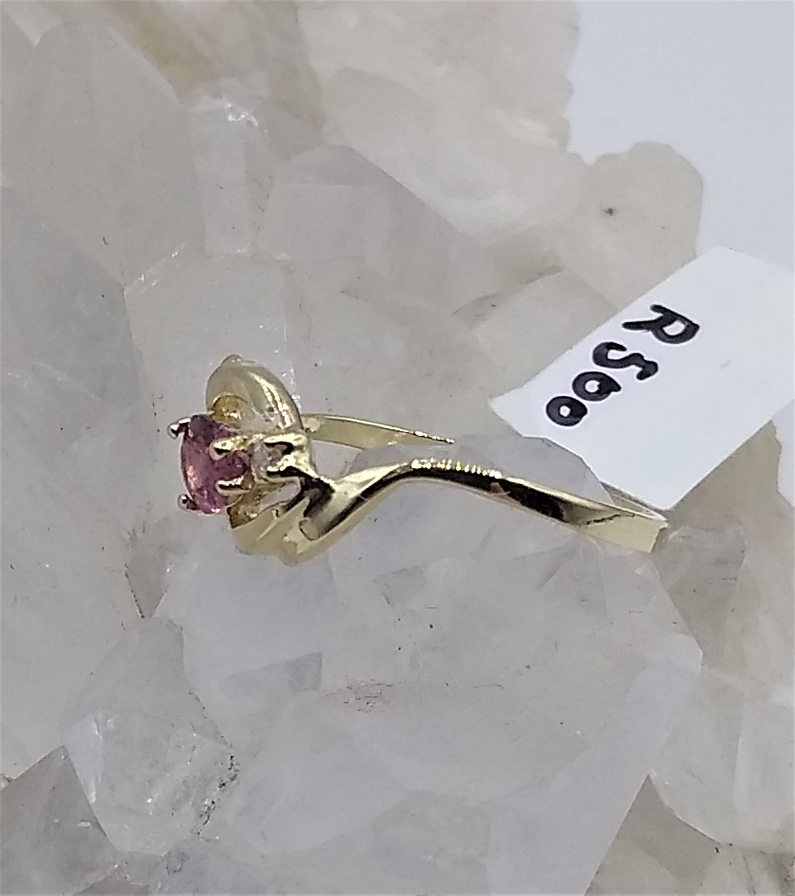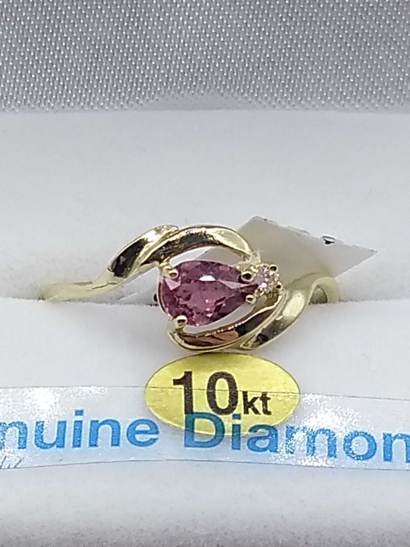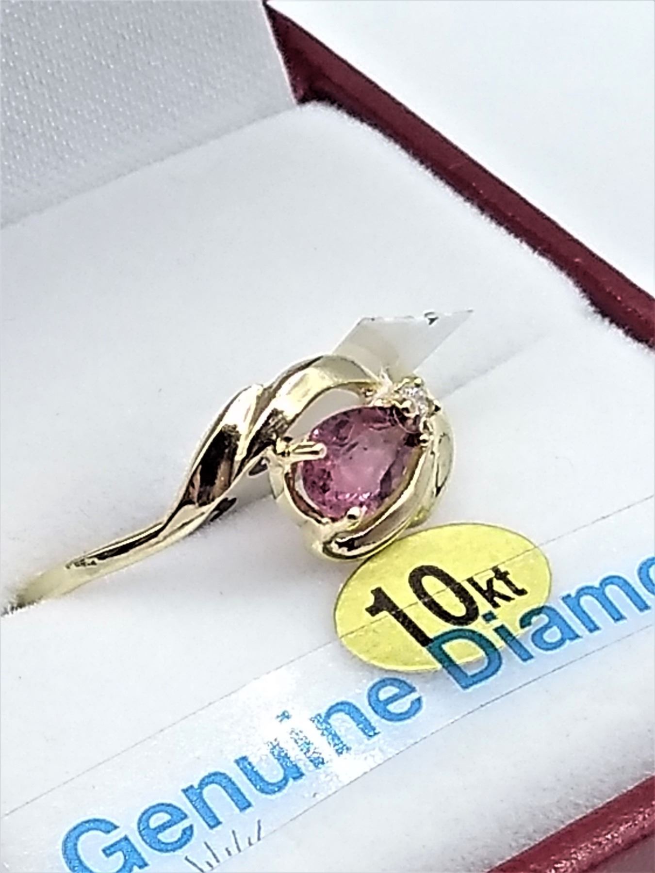 10kt. Yellow Gold 5.75mm x 4mm genuine Rubellite (0.5cts) & Diamond (0.02cts) Ring, W/A $2000.00