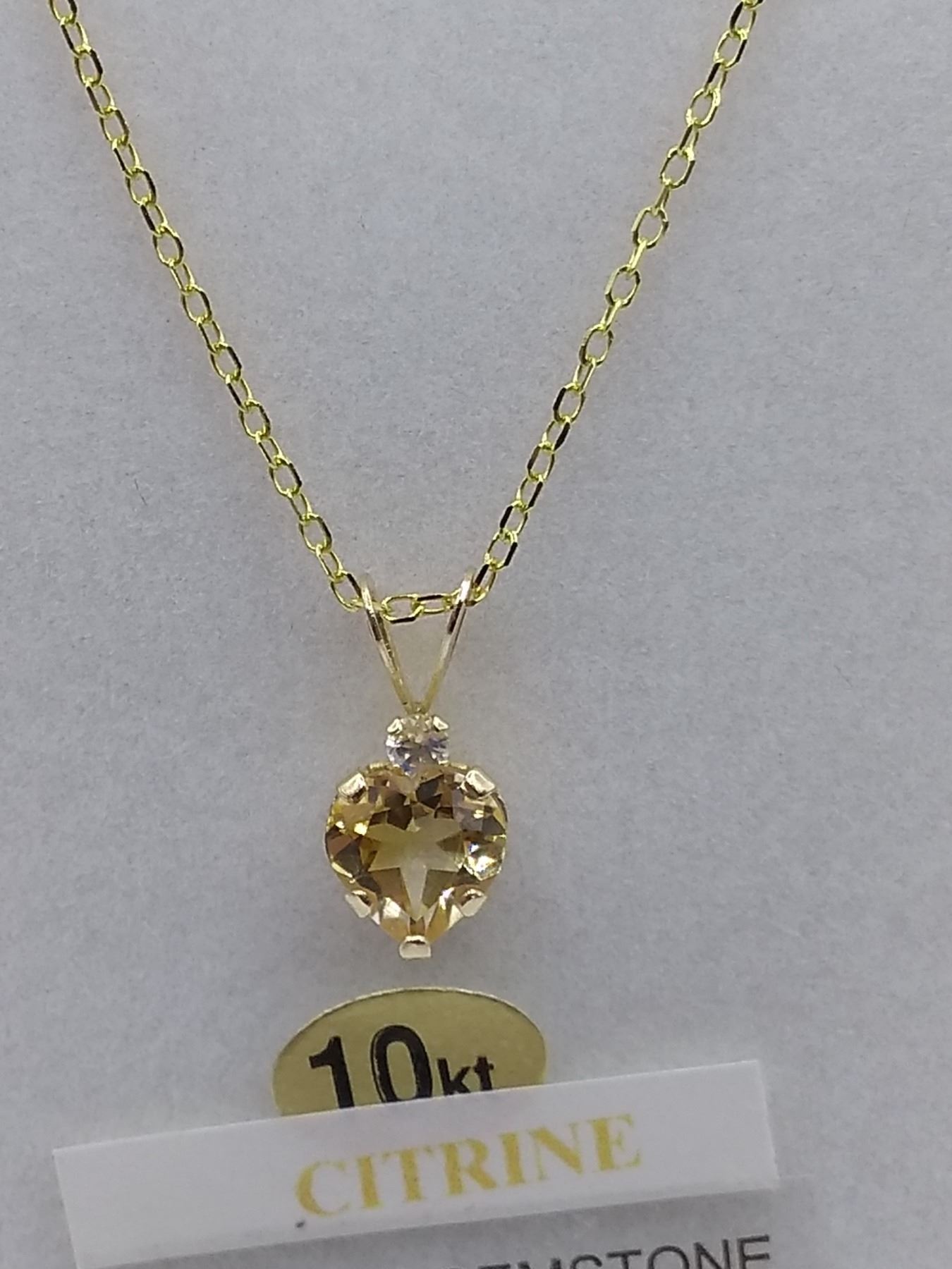 10kt. Yellow Gold 6.4x5.7mm genuine Citrine (0.47cts) & CZ heart Pendant with Sterling chain, W/A $3