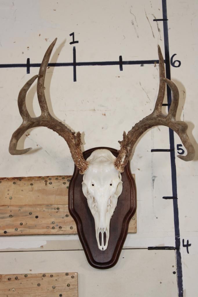 Very Nice 11-Point WHITETAIL DEER Skull on a Wood Plaque. It has All its Teeth and an 18.5" Spread. TAXIDERMY