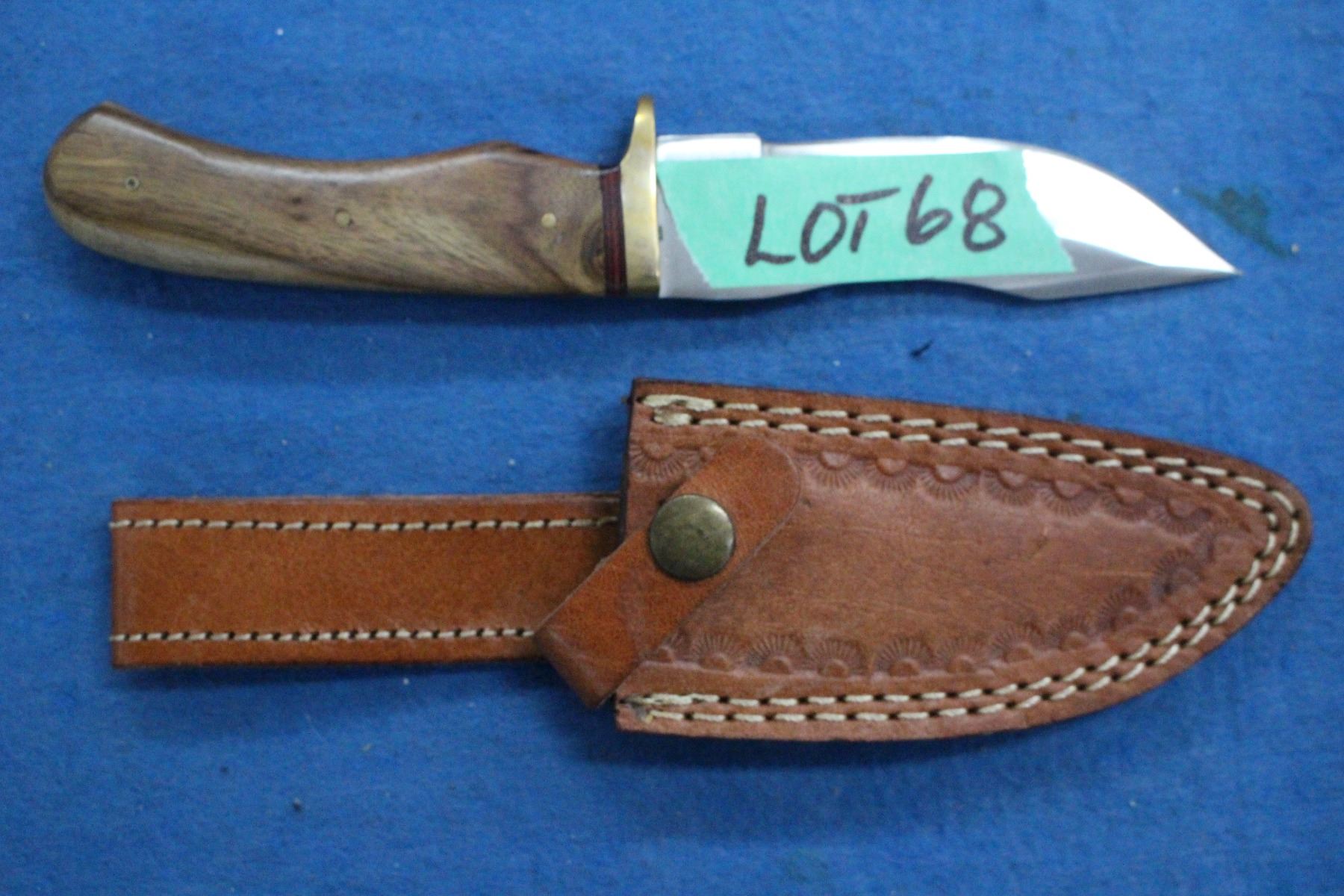 11 cm. Stainless Knife w/Wood & Brass Handle and Sheath