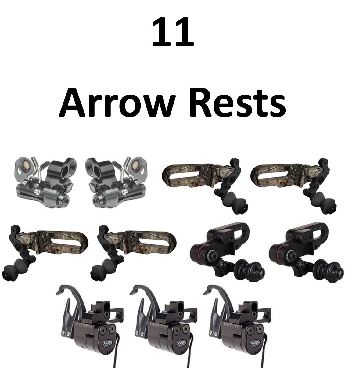 11 x Arrow Rests, 2 x Mathews Downforce Rest, 1-Black RH, 1-Black LH. 3 x Axion Pulse Black RH, 6 x G5, 2-Expert I Drop Away AP RH, 2-Expert I LH, 2-Expert II AP RH