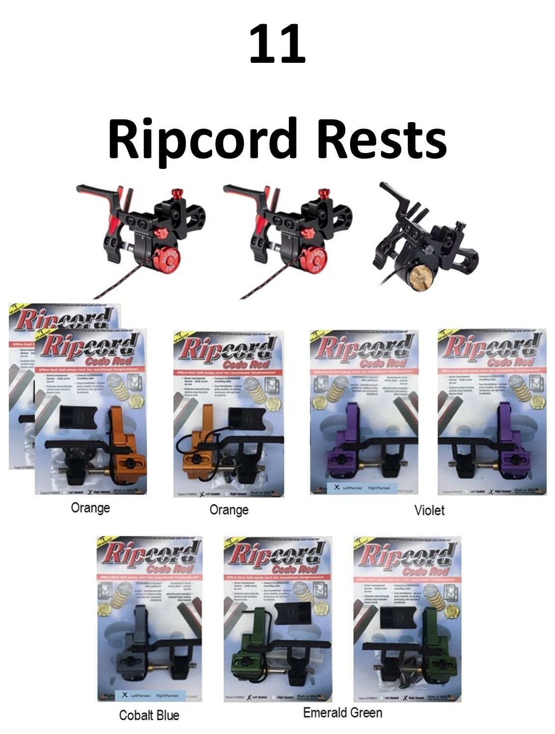 11 x Ripcord Rests, 1-Cobalt Blue RH, 2-Orange RH, 1-Emerald Green RH, 1-Emerald Green LH, 2-ACE Micro Adj. Red RH, 1-ACE Micro Adj. Red LH, 1-Orange LH, 1-Violet RH, 1-Violet LH