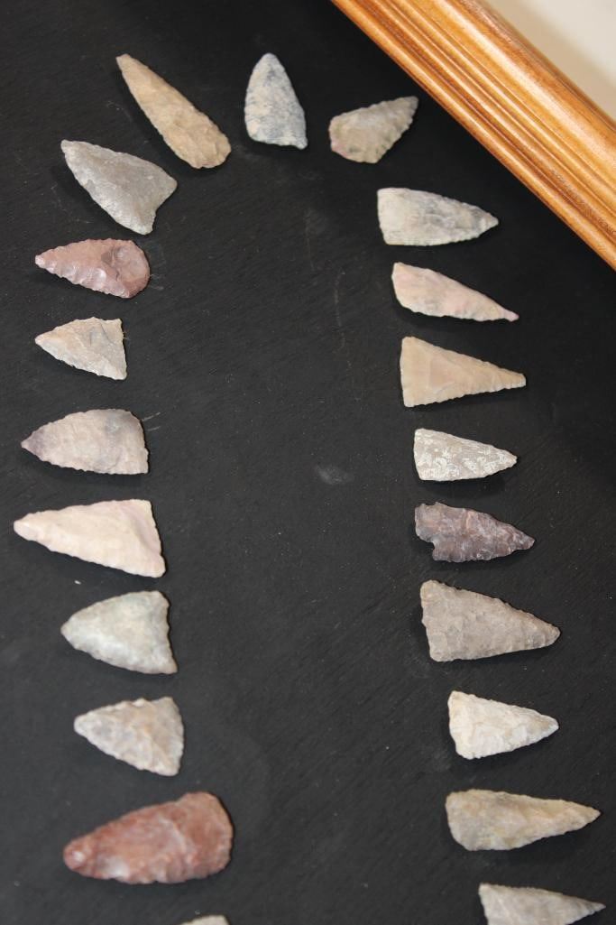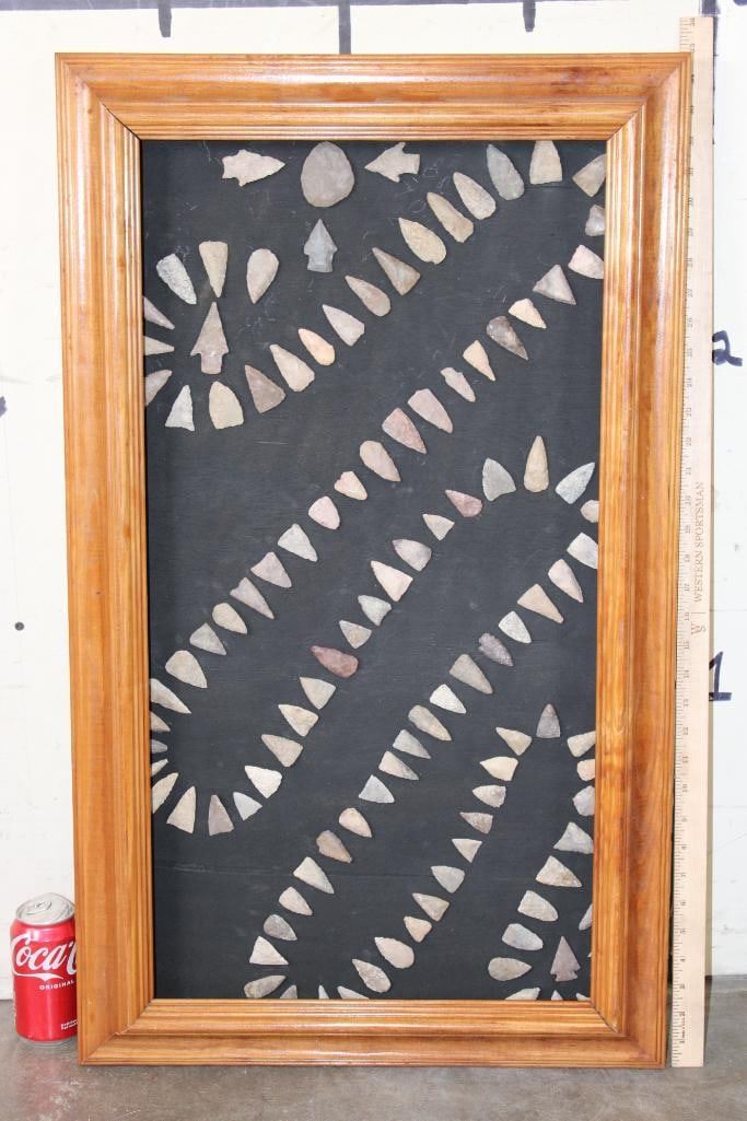 113 Authentic Ancient Prehistoric Willow Leaf Arrow Points or Flint Preforms. These were found in South Texas and used by Native Americans during the Archaic Period (8000 - 1000 BC). Arrowheads from South Texas were primarily used as tools and weapons. Beyond their use in hunting and warfare, some arrowheads were adapted for other tasks like woodworking, hide scraping, and even as knives or lances. They are displayed in a Wooden Frame with No Glass that measures 35" Tall x 21" Wide. ARROWHEADS *While these arrowheads came from an estate of a long-time collector; we as the auction company are not going to get into a protracted discussion about age and authenticity. This collector has no paperwork or COA as to age or authenticity. While we believe the vast majority; if not all to be old; we are wholly uncomfortable with an argument with qualified and unqualified, alleged authorities. All of that to say; we are not guaranteeing age or authenticity*