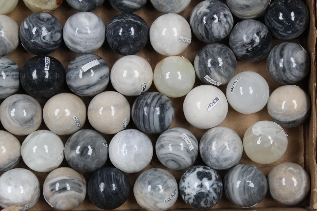 11lbs 11oz of ONYX Semi-Polished Mineral Spheres or ORBS from Mexico. All measure between 1.125" to 1.375" in Diameter (ONE$). ROCKS FOSSILS MINERAL SPHERES
