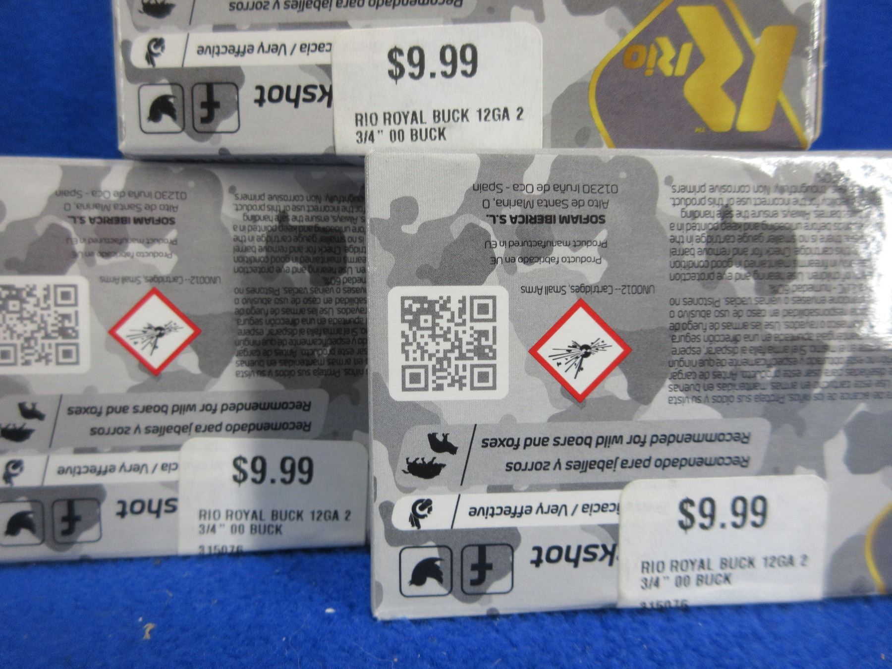 12 Ga. 2 3/4" 00 Buck Rio Shotshells (Pick Up or Ship by UPS Only) - 3 Boxes of 5