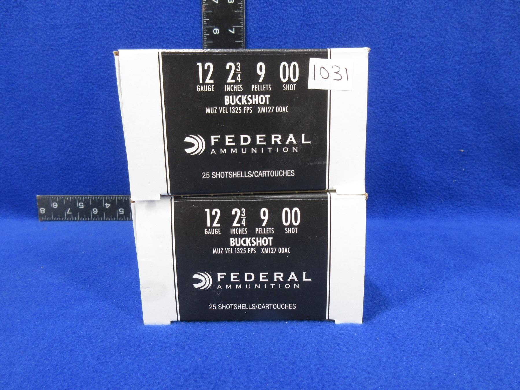 12 Ga 2 3/4" 00 Buckshot Federal Shotshells - 2 Boxes of 25 - Must Ship Purolator
