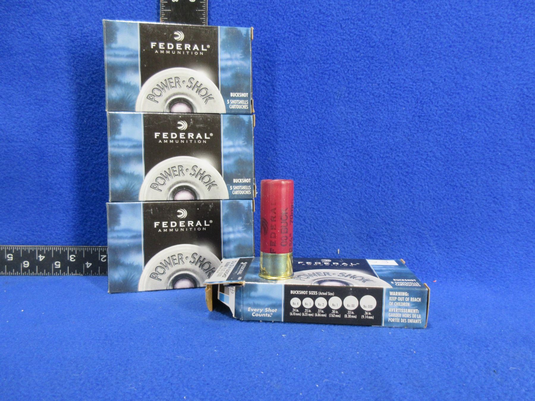 12 Ga 2 3/4" 00Buck Power-Shok Federal Shotshells - 4 Boxes of 5 - Must Ship Purolator