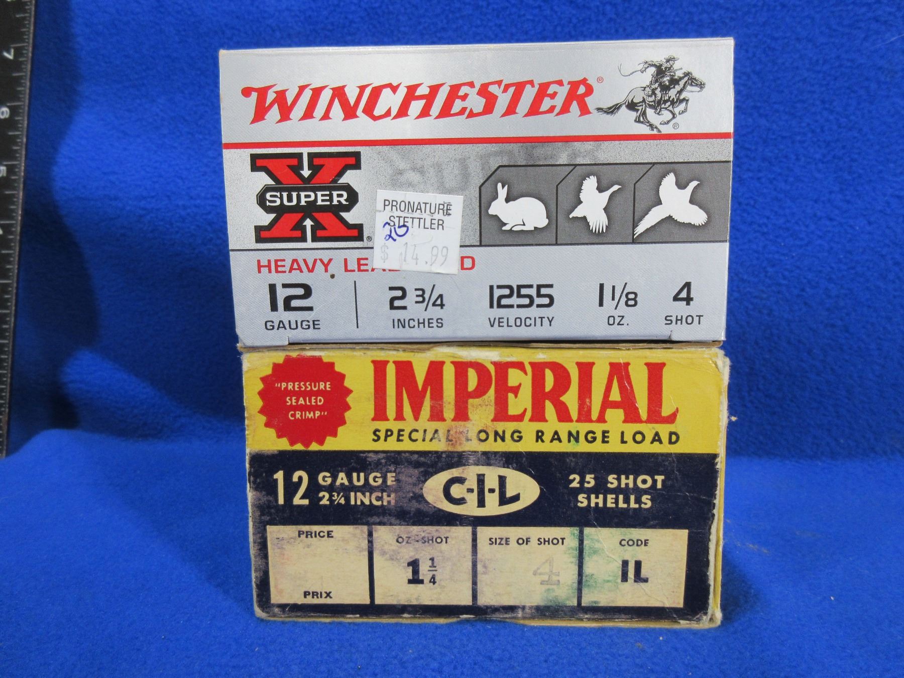 12 Ga 2 3/4" 4 Shot Winchester & Imperial Shotshells - Box of 23 (Winchester), Box of 5 (Imperial) - Must Ship Purolator