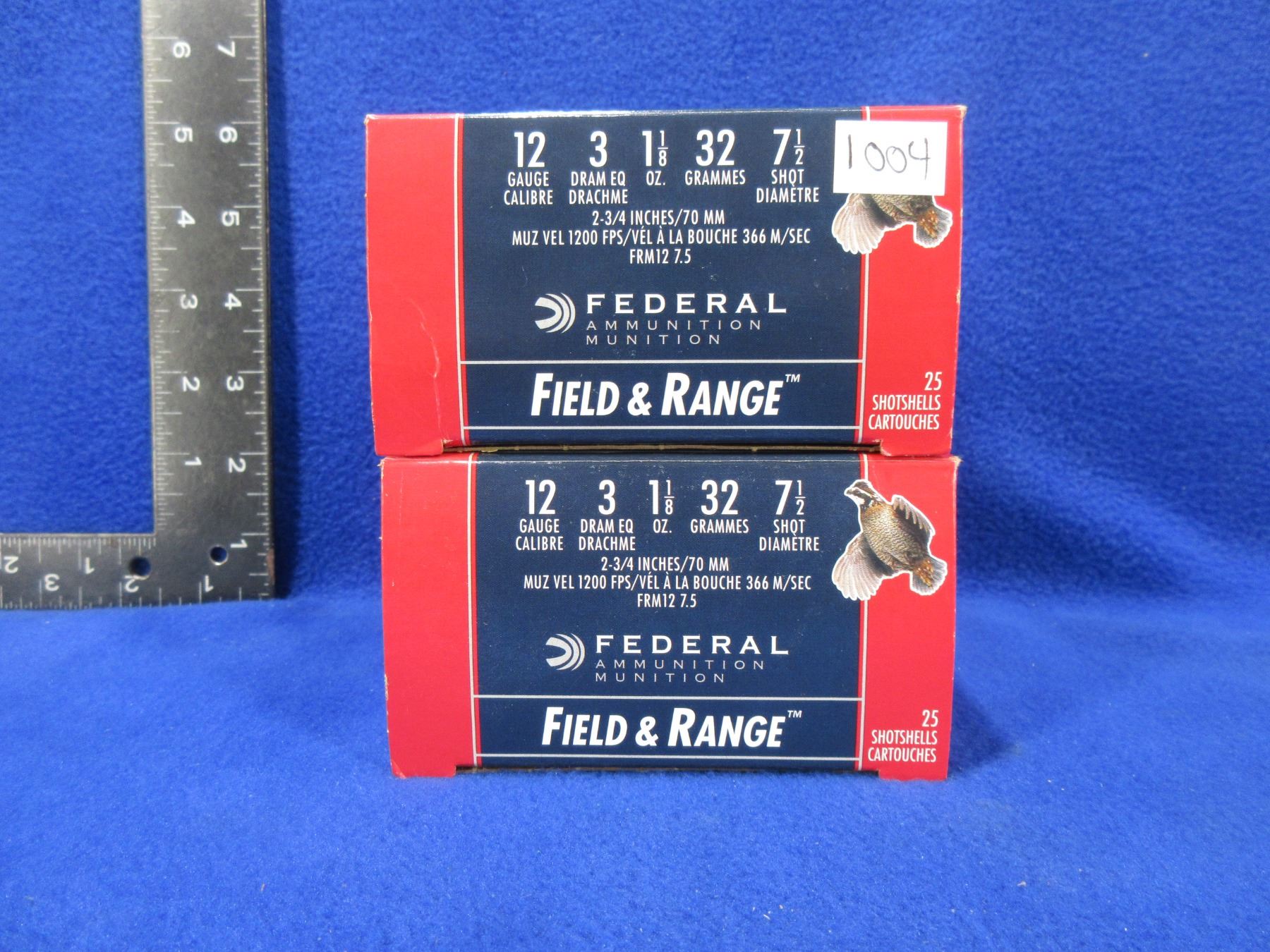 12 Ga. 2 3/4" 7 1/2 Shot Field & Range Federal Shotshells - 2 Boxes of 25