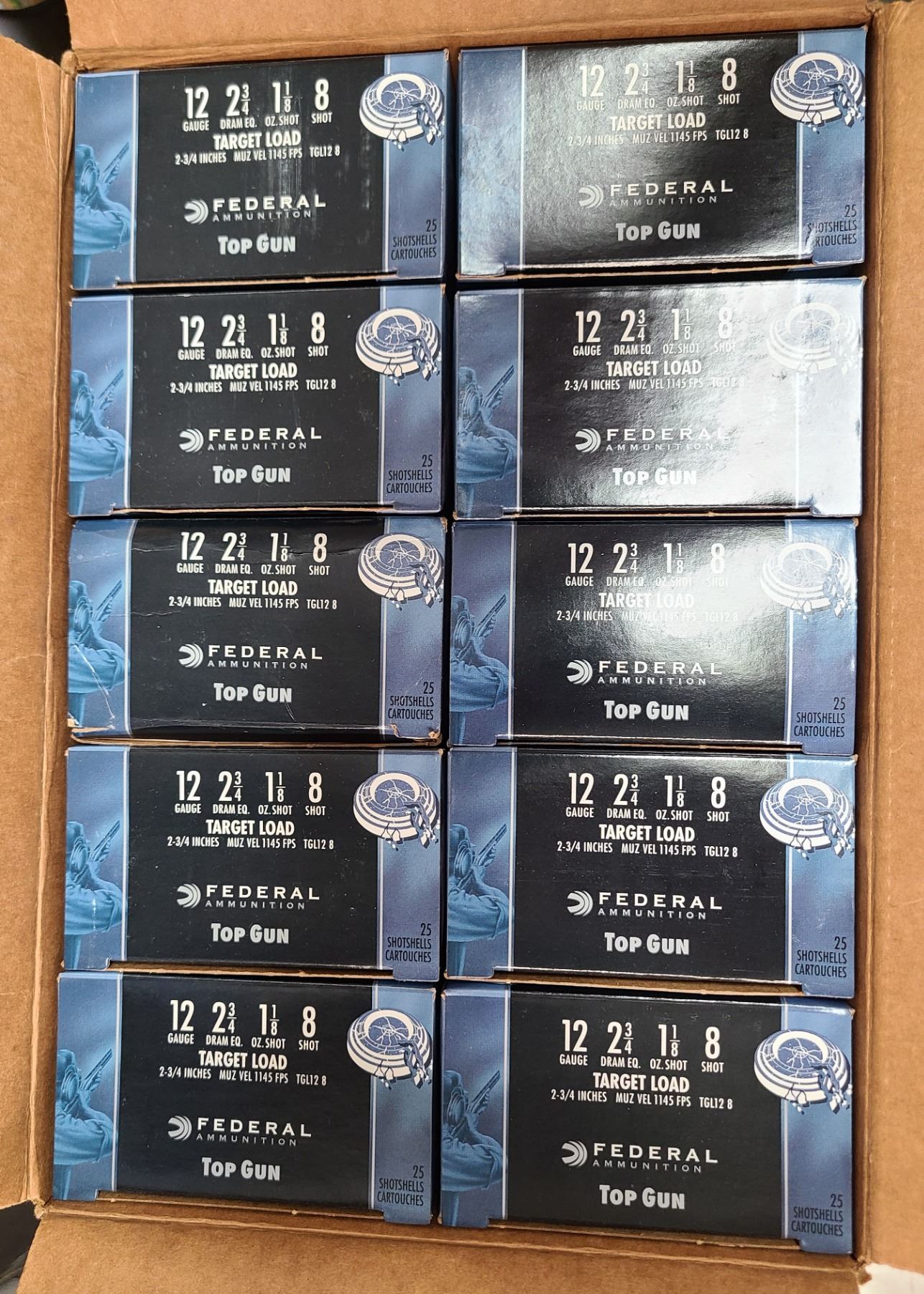 12 ga CASE Lot Federal No 8 Target Load 2 3/4 inch Shells - 250 rds