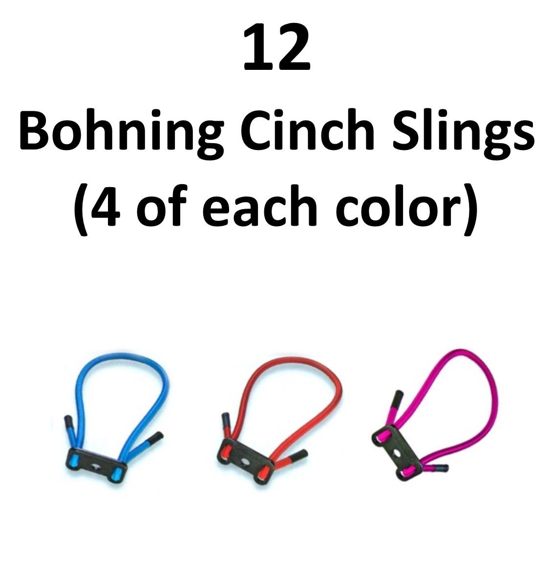 12 x Bohning Cinch Slings, 4-Red , 4-Blue, 4-Hot Pink