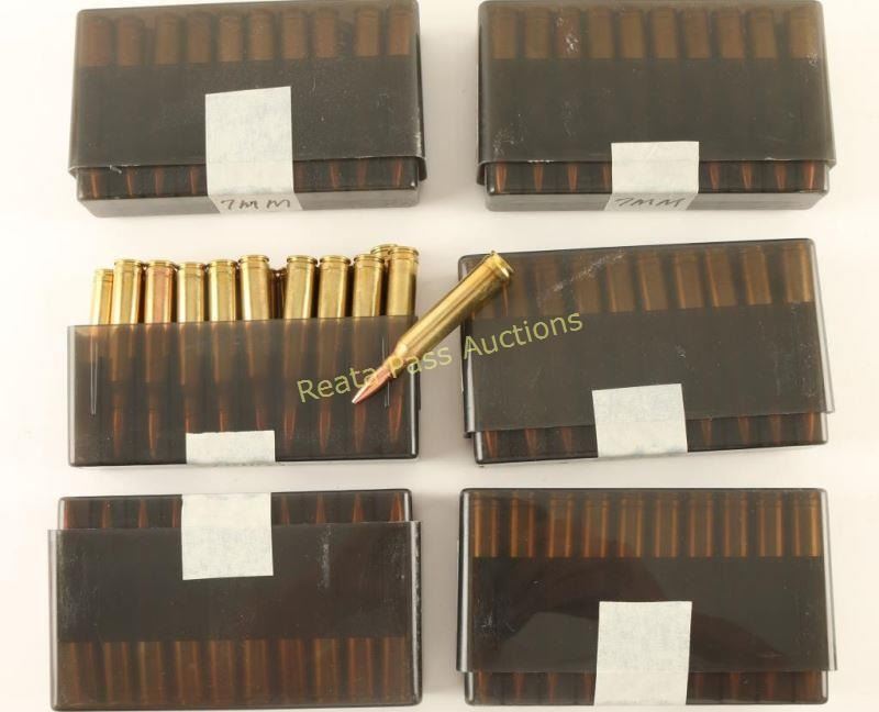 Consisting of six 20 round Frankford Arsenal ammo boxes full of ammunition with R-P headstamps and hollow point bullets. Possibly remanufactured or reloads.