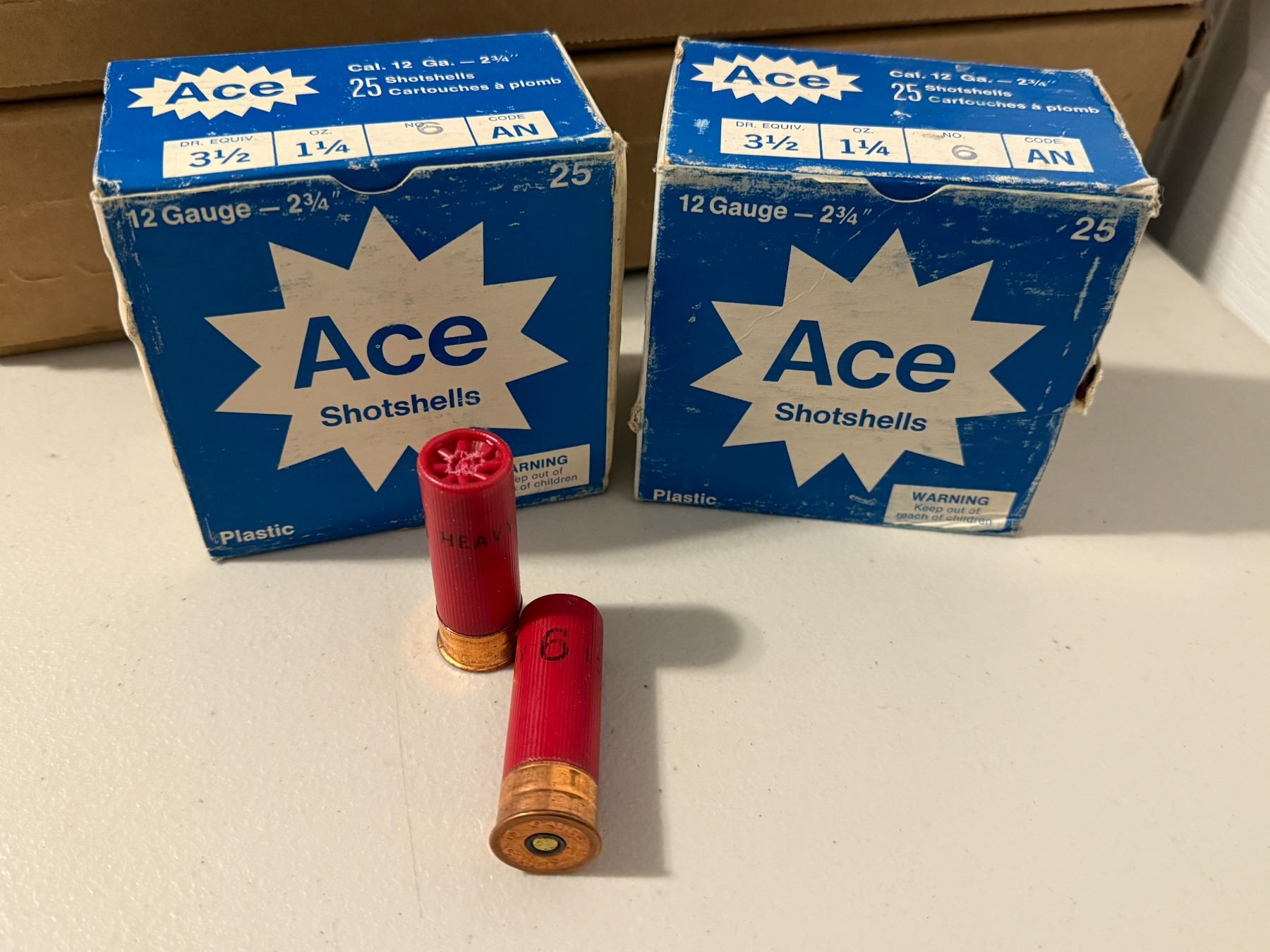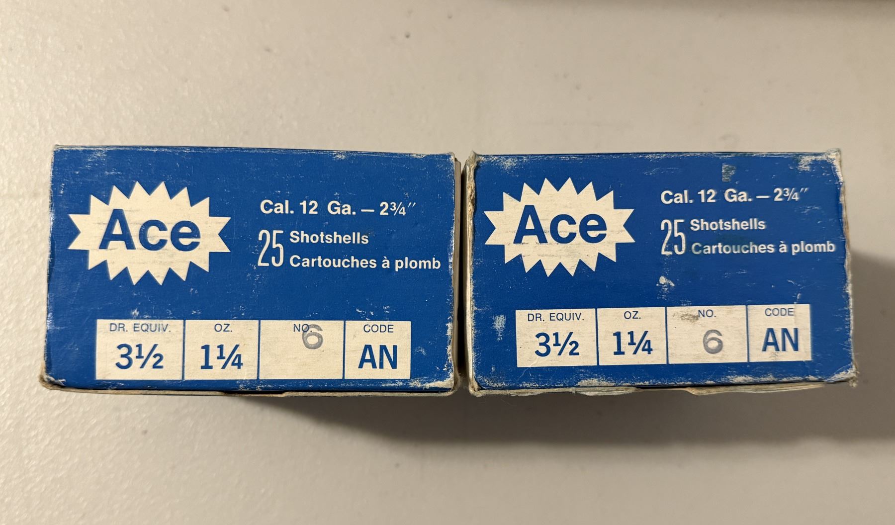 12ga 2-3/4" Ace Shellshots Size 6 Code AN. 2 full boxes of 25 each.