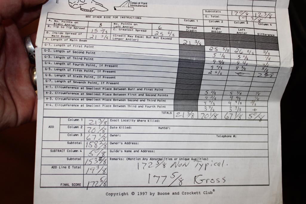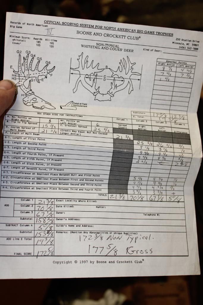 WHITETAIL DEER Shoulder Mount Taken in 1997 in Missoula, Mt. It comes with the original Boone and Crockett Club Score Sheet. This Whitetail Deer scored 172 5/8 Non Typical points and 177 5/8 Gross Points. TAXIDERMY
