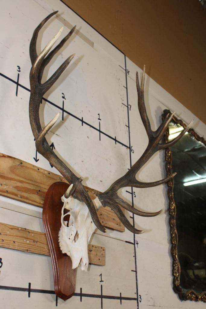 Nice 16-Point RED STAG Skull on a Wood Plaque. It has a 37.75" Spread. TAXIDERMY