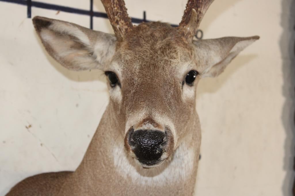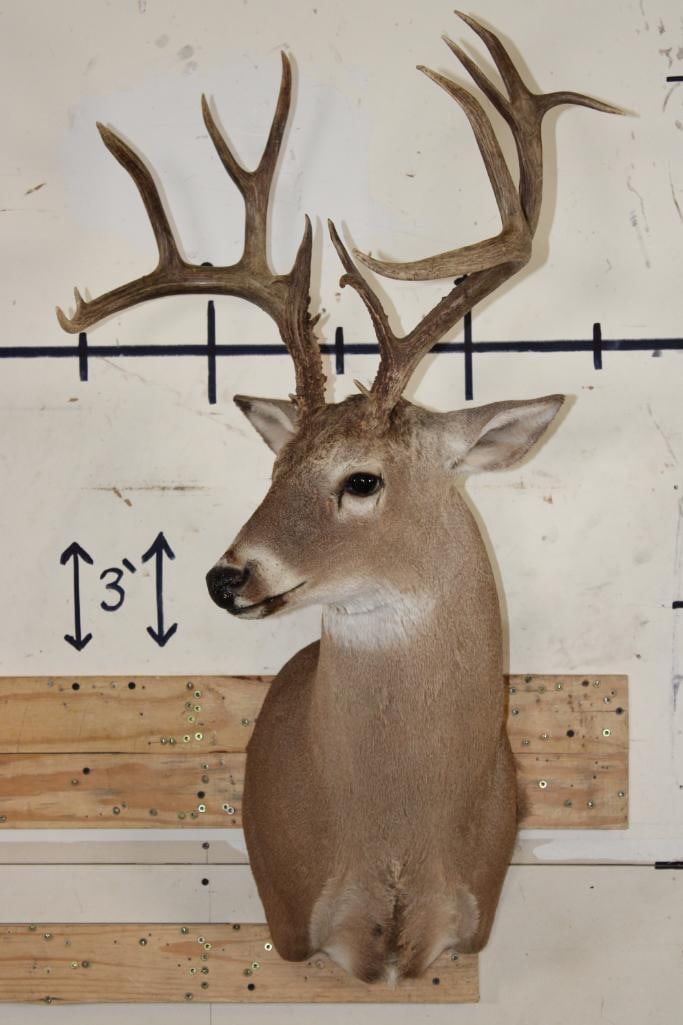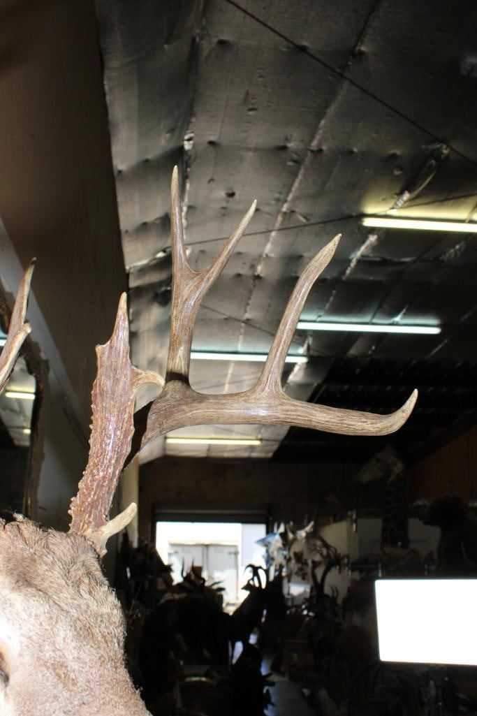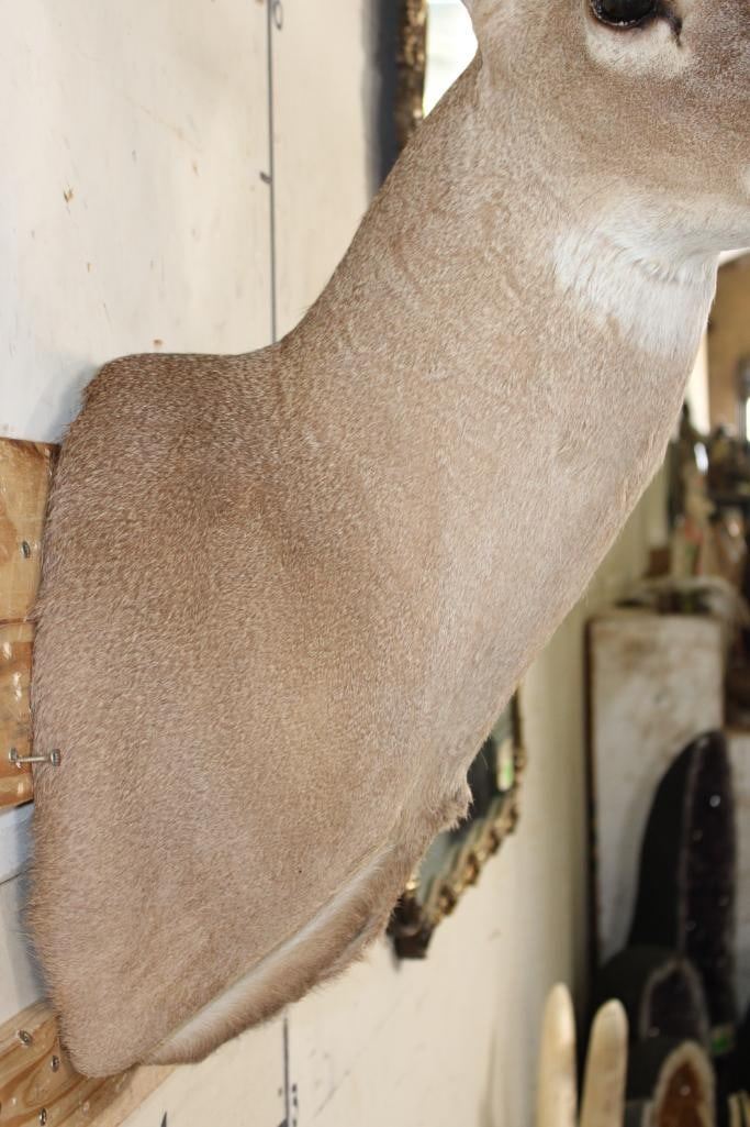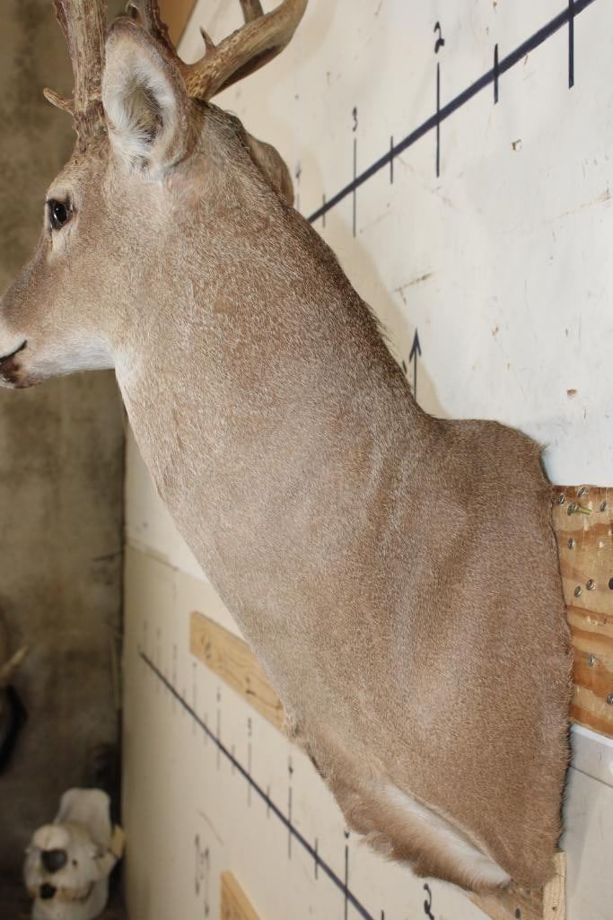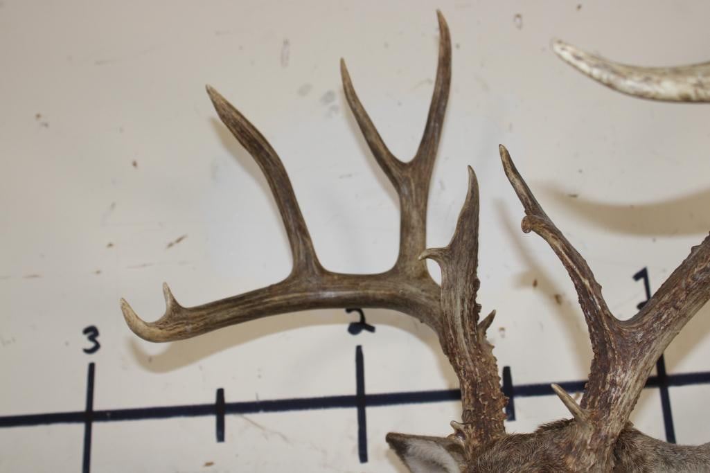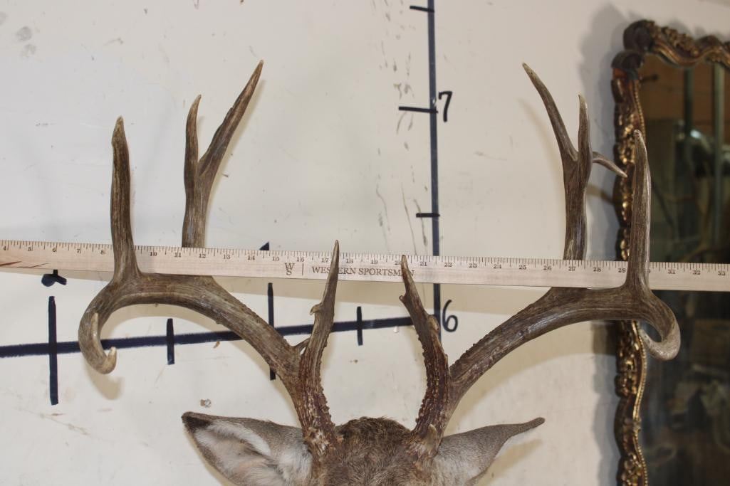 16-Point WHITETAIL DEER Shoulder Mount with an impressive Rack. It has a 21.75" Spread. There is some minor cracking around the eyes, otherwise it is in Very Good Condition. TAXIDERMY