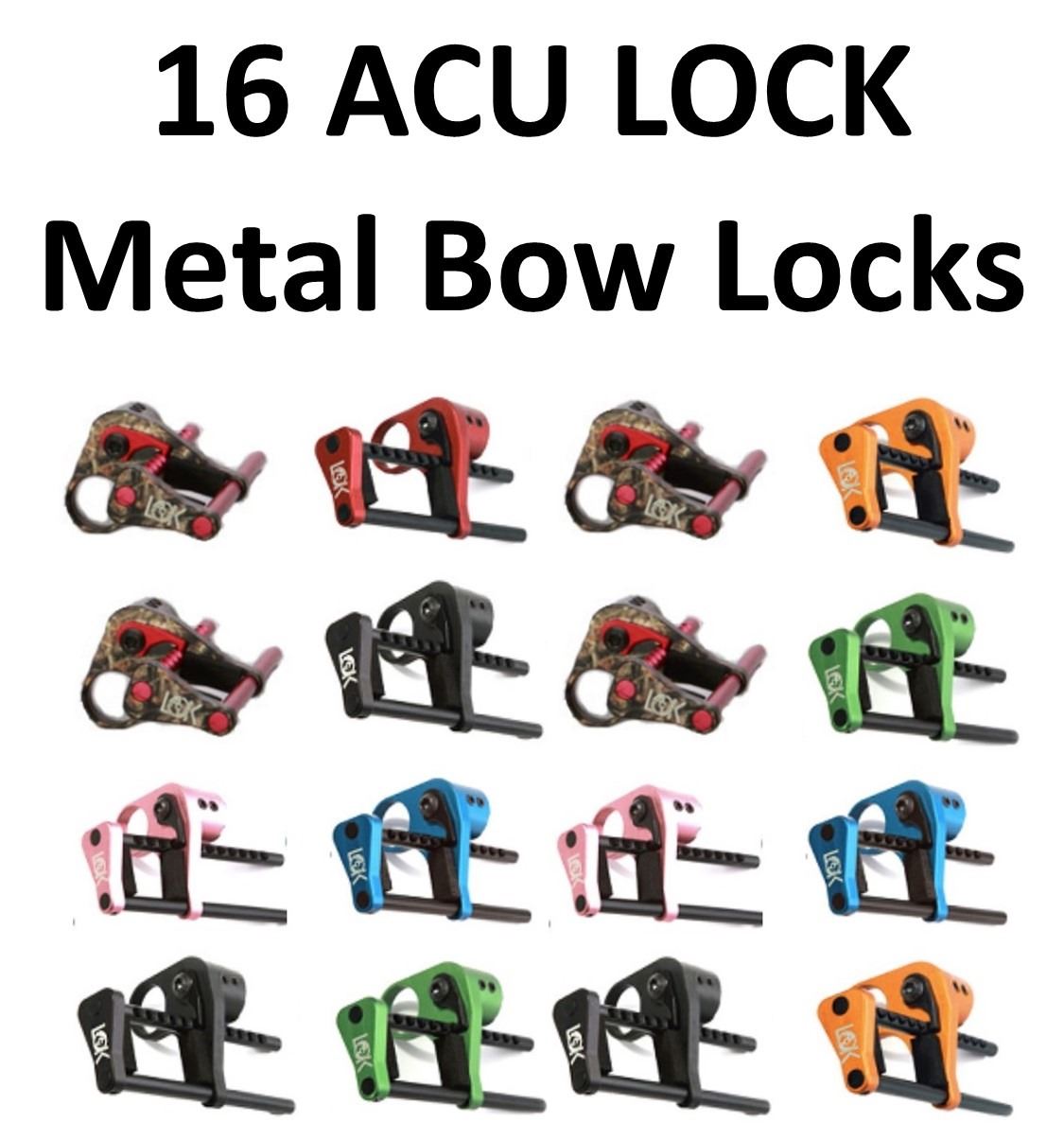 16 x ACU LOCK Metal Bow Locks, 4-Lost Camo, 1-Red, 3-Orange, 2-Green, 3-Black, 2-Pink, 2-Blue