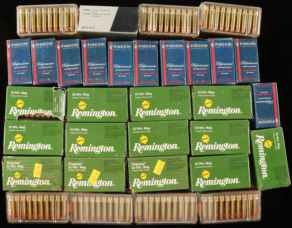 Remington 22 Win Mag 650 Rds, Fiocchi Performance 550 Rds new in box. Also includes 400 Rds of Federal Premium 22 Win Mag.