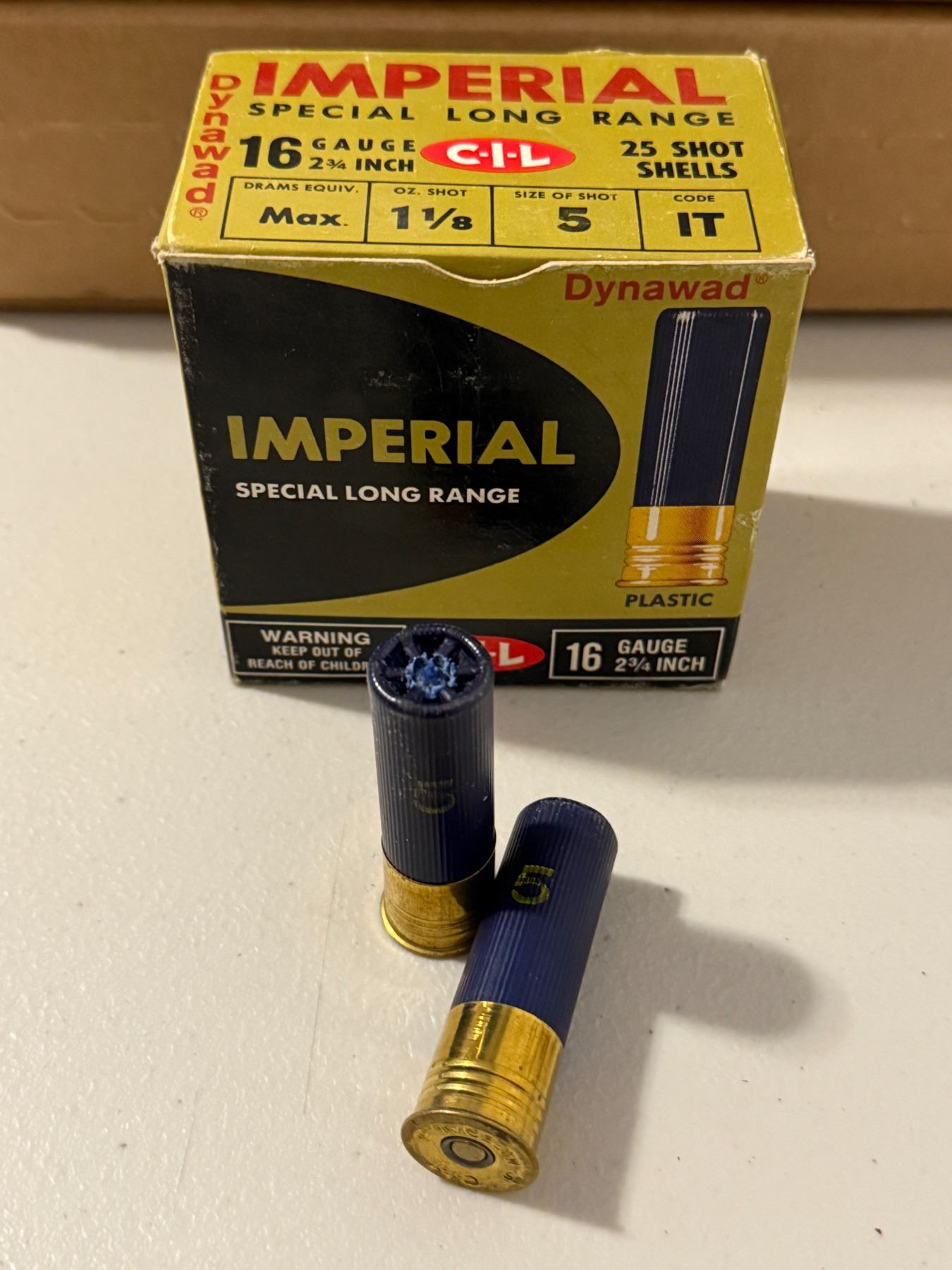 16ga 2 3/4" Imperial Special Long Range Shot Shells. Qty 23.