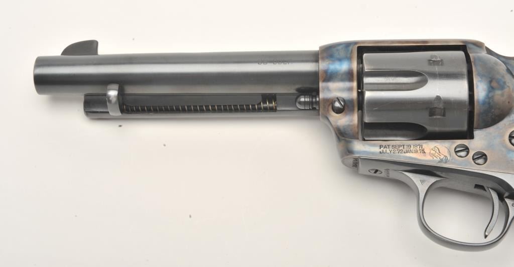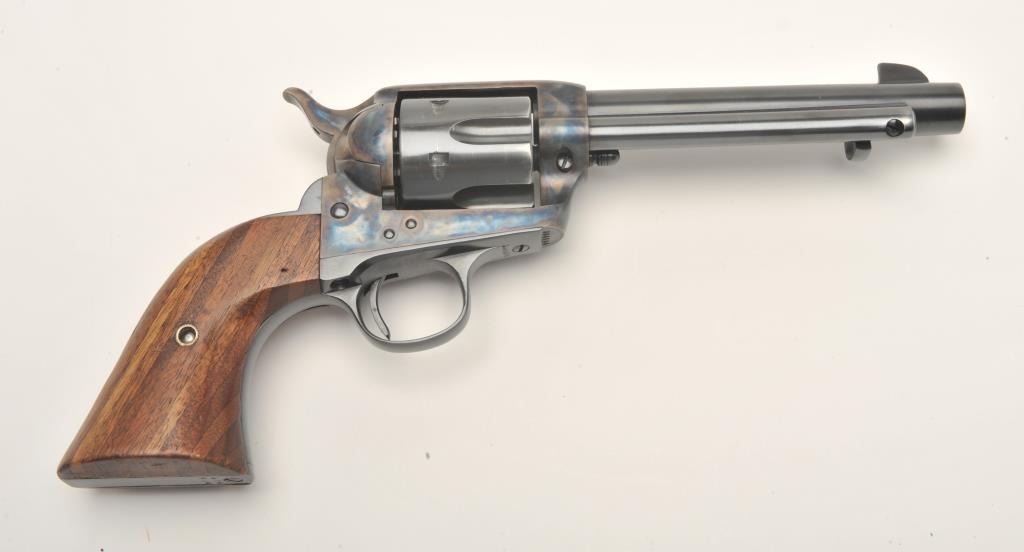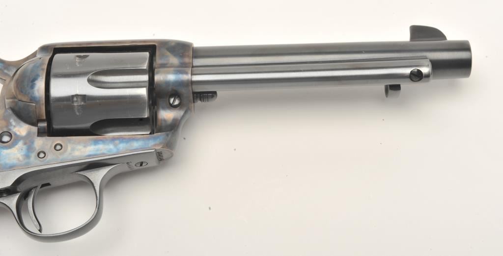 17FS-55 COLT S.A. #304804Colt SAA revolver, scarce .38 Colt caliber, 5.5” barrel, re-finished and re-gripped with smooth custom wood grips, S/N 304804, in overall very good condition as re-blued and re-case hardened, very good bore, crispaction, sharp markings and fine custom grips; accompanied by a Colt factory letter confirming caliber, barrel length with stocks “Not Listed”; shipped to Lord & Poll, address not available on April 25, 1908, onegun in shipment. (C&R/No PPT). Est.: $1,600-$3,200.Colt SAA revolver, scarce .38 Colt caliber, 5.5” barrel, re-finished and re-gripped with smooth custom wood grips, S/N 304804, in overall very good condition as re-blued and re-case hardened, very good bore, crispaction, sharp markings and fine custom grips; accompanied by a Colt factory letter confirming caliber, barrel length with stocks “Not Listed”; shipped to Lord & Poll, address not available on April 25, 1908, onegun in shipment. (C&R/No PPT). Est.: $1,600-$3,200.