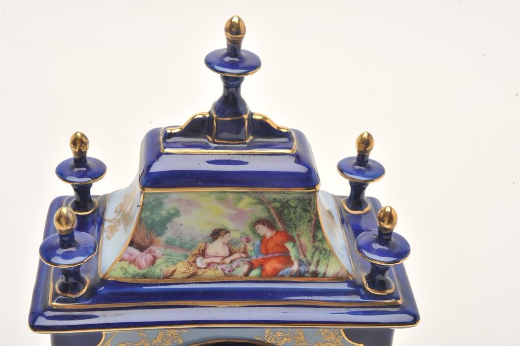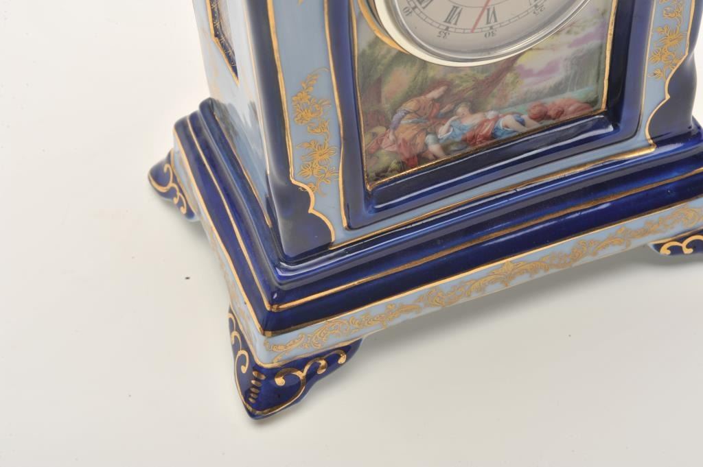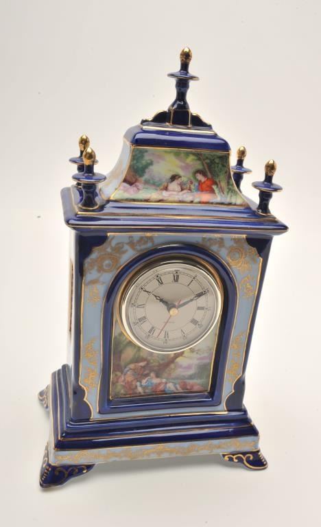 17FU-23 LIMOGES FRANCE COBALT BLUE CIRCA 1960sFrench Limoges cobalt blue porcelain mantle clock with quartz movement, ca. 1960’s; approximately 14” in height. Est.: $50-$100.French Limoges cobalt blue porcelain mantle clock with quartz movement, ca. 1960’s; approximately 14” in height. Est.: $50-$100.