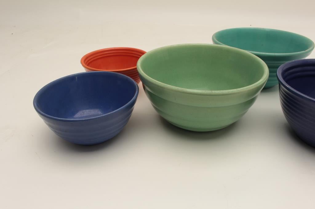 17FU-9 LOT "BAUER" MIXING BOWLS 1950s 5 PIECESLot of 5 “Bauer” mixing bowls ca. 1950’s; different sizes; colors include blue, orange, turquoise and green. Est.: $100-$200.Lot of 5 “Bauer” mixing bowls ca. 1950’s; different sizes; colors include blue, orange, turquoise and green. Est.: $100-$200.