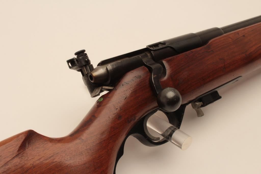 17KH-434 MOSSBERG #38467U.S. Property-marked Mossberg Model 42MB bolt action rifle, .22LR caliber, blued finish, British proofed and import-marked, U.S. S/N 38467, in overall good condition with a good bore, good action, good markings and goodwood stock; damaged hard rubber butt plate. (C&R/PPT). Est.: $150-$300.U.S. Property-marked Mossberg Model 42MB bolt action rifle, .22LR caliber, blued finish, British proofed and import-marked, U.S. S/N 38467, in overall good condition with a good bore, good action, good markings and goodwood stock; damaged hard rubber butt plate. (C&R/PPT). Est.: $150-$300.