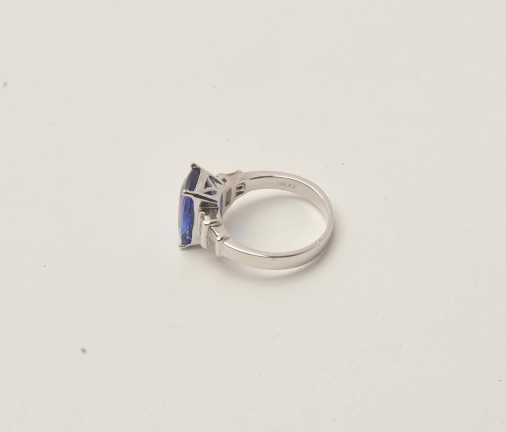 17LP-16 TANZANITE RINGMagnificent 18K white gold Tanzanite and diamond ring with a nearly 5 carat cushion cut Tanzanite. The ring features a 4.89 carat Tanzanite and .42 carats of VS clarity and g color diamonds. The ring appraised for $17,600 (see attached AGI appraisal). A truly superior piece from a local estate. Est.: $3,500-$7,000.Magnificent 18K white gold Tanzanite and diamond ring with a nearly 5 carat cushion cut Tanzanite. The ring features a 4.89 carat Tanzanite and .42 carats of VS clarity and g color diamonds. The ring appraised for $17,600 (see attached AGI appraisal). A truly superior piece from a local estate. Est.: $3,500-$7,000.
