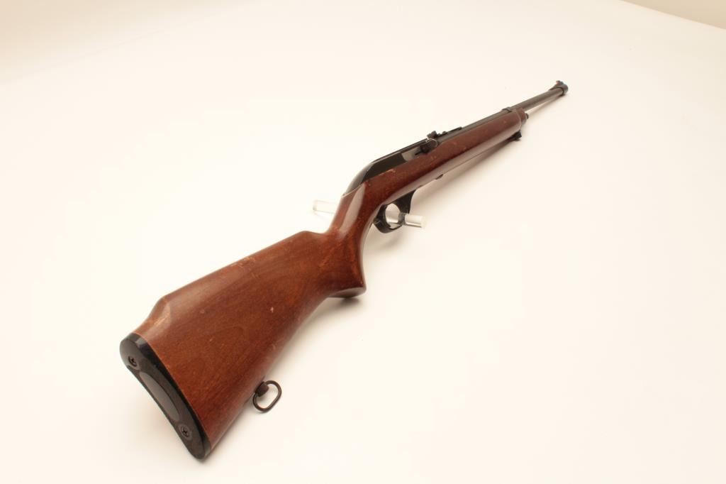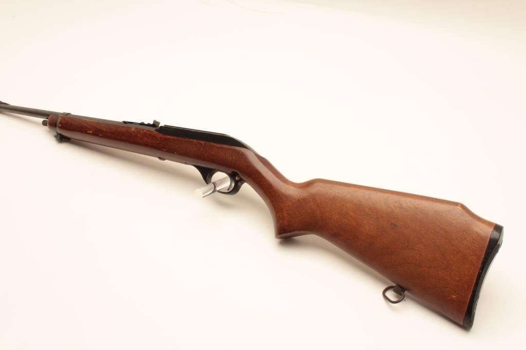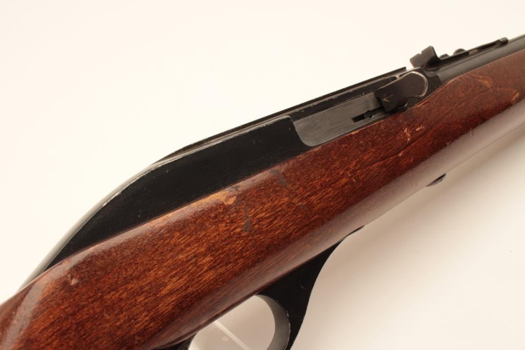 17LP-9 MARLIN/GLENFIELD #71446789Marlin Glenfield Model 75 semi-auto rifle, .22 Long Rifle, Serial #71446789. The rifle is in fair overall condition with an 18” barrel with a ramped blade front and adjustable rear sights. The barrel andreceiver retain the majority of their blue finish with edge wear, mars from use and light surface rust on the barrel. The smooth wood stock is in good condition with marks and dents from field use. The butt ends with a plastic butt plate. The bore is fair, the action functions and the markings are legible. Est.: $50-$100. (C+R).Marlin Glenfield Model 75 semi-auto rifle, .22 Long Rifle, Serial #71446789. The rifle is in fair overall condition with an 18” barrel with a ramped blade front and adjustable rear sights. The barrel andreceiver retain the majority of their blue finish with edge wear, mars from use and light surface rust on the barrel. The smooth wood stock is in good condition with marks and dents from field use. The butt ends with a plastic butt plate. The bore is fair, the action functions and the markings are legible. Est.: $50-$100. (C+R).