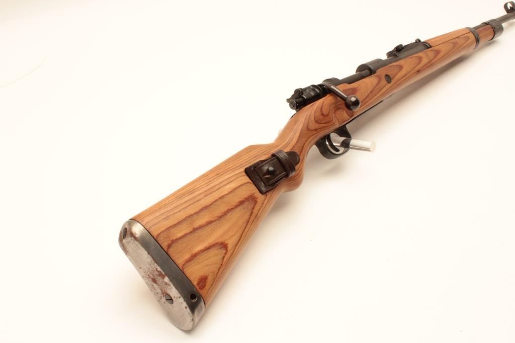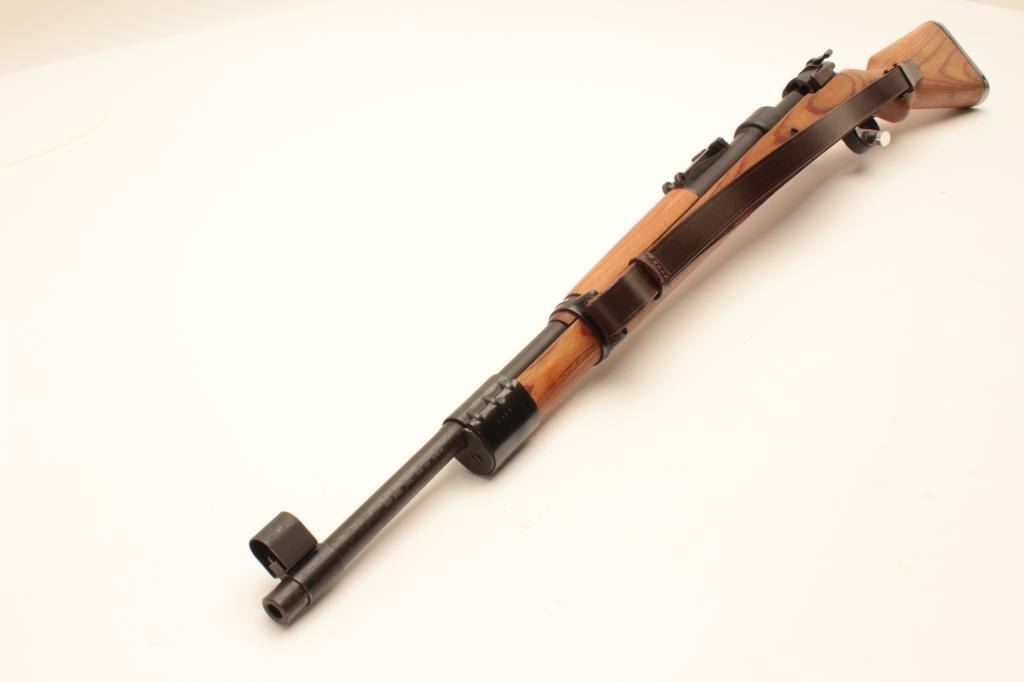 17MH-27 MITCHELL MAUSER #24414German Model 98 bolt action rifle, byp 45 marked, 7.92mm caliber, military finish, import-marked, wood stock, leather sling, S/N 24414; in overall good to very good condition with majority of military finish,very good bore, crisp action, very good markings and wood. MH-(C&R/PPT). Est.: $300-$600.German Model 98 bolt action rifle, byp 45 marked, 7.92mm caliber, military finish, import-marked, wood stock, leather sling, S/N 24414; in overall good to very good condition with majority of military finish,very good bore, crisp action, very good markings and wood. MH-(C&R/PPT). Est.: $300-$600.