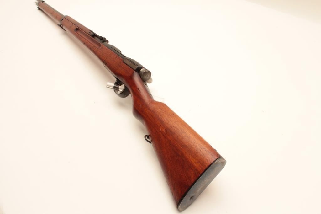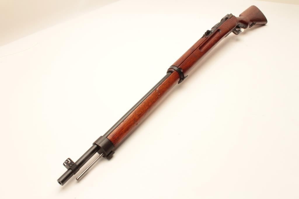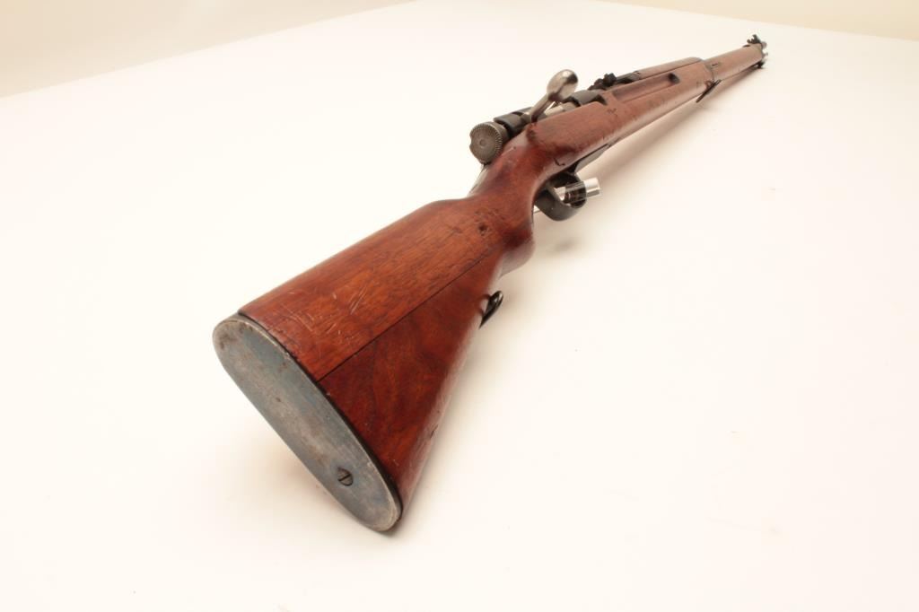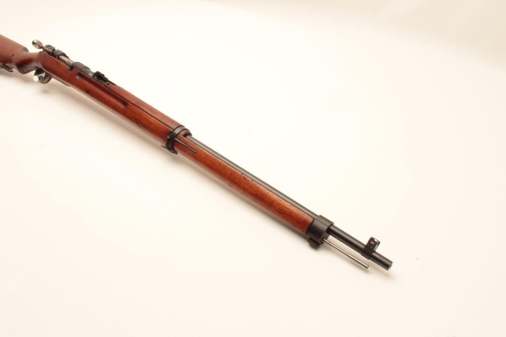 17MH-38 ARISAKA #20087Japanese Arisaka bolt action rifle, 6.5mm caliber, partially ground mum, Japanese characters present, military finish, wood stock, S/N 20087, in overall good condition with a good bore, crisp action, majority ofmilitary finish remaining, good wood. (C&R/PPT). Est.: $150-$300.Japanese Arisaka bolt action rifle, 6.5mm caliber, partially ground mum, Japanese characters present, military finish, wood stock, S/N 20087, in overall good condition with a good bore, crisp action, majority ofmilitary finish remaining, good wood. (C&R/PPT). Est.: $150-$300.