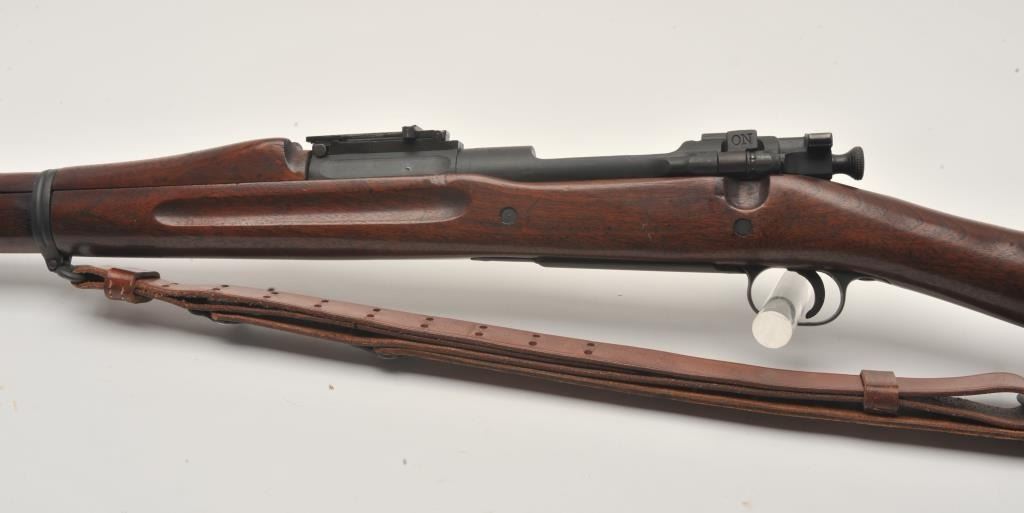 17MH-45 ROCK ISLAND 1903 #340984U.S. Springfield Model 1903 bolt action rifle by Rock Island Arsenal, .30-06 caliber, RIA barrel dated 9-18, re-finished, leather sling dated 1918, gun is S/N 340984, in overall good + condition as re-finished, good bore,crisp action, good markings and wood stock. (C&R/PPT). Est.: $400-$800.U.S. Springfield Model 1903 bolt action rifle by Rock Island Arsenal, .30-06 caliber, RIA barrel dated 9-18, re-finished, leather sling dated 1918, gun is S/N 340984, in overall good + condition as re-finished, good bore,crisp action, good markings and wood stock. (C&R/PPT). Est.: $400-$800.