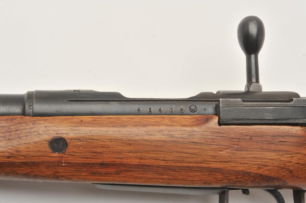17MH-60 ARISAKA #41402Sporterized Japanese Arisaka bolt action rifle, 7.7mm caliber, re-blued finish, wood stock with spacer and hard rubber butt pad, S/N 41402, in overall good condition with a good bore, crisp action and markings, goodwood stock. (C&R/PPT). Est.: $100-$200.Sporterized Japanese Arisaka bolt action rifle, 7.7mm caliber, re-blued finish, wood stock with spacer and hard rubber butt pad, S/N 41402, in overall good condition with a good bore, crisp action and markings, goodwood stock. (C&R/PPT). Est.: $100-$200.