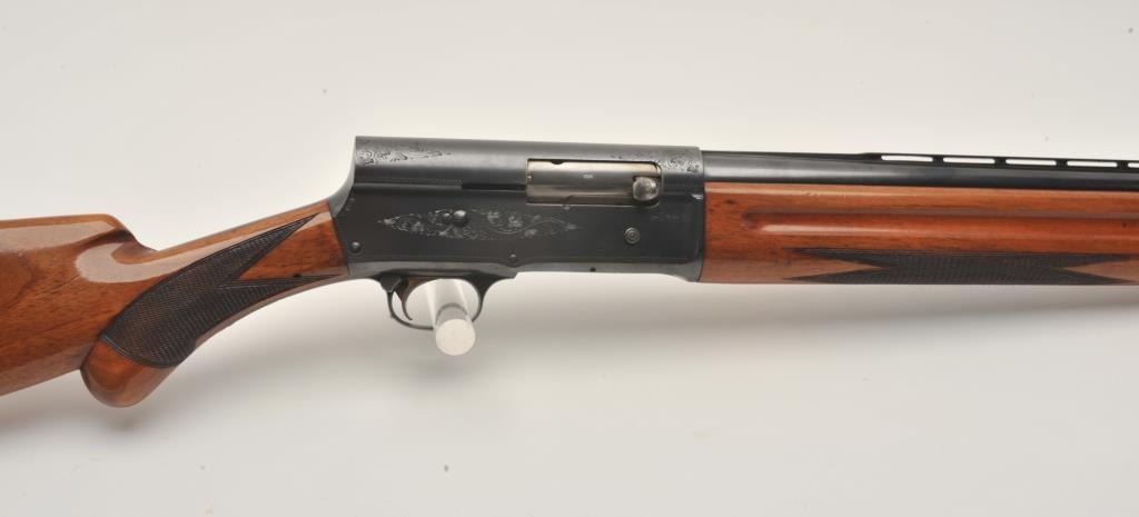 17MH-70 BROWNING LIGHT TWELVE #424479Browning Light Twelve semi-automatic shotgun, 12 gauge, ventilated rib barrel, blued finish, checkered wood stocks, S/N 424479, in overall very good + condition displaying the majority of its original blued finish, verygood bore, crisp action and markings, very good wood stocks. (Modern/PPT). Est.: $350-$700.Browning Light Twelve semi-automatic shotgun, 12 gauge, ventilated rib barrel, blued finish, checkered wood stocks, S/N 424479, in overall very good + condition displaying the majority of its original blued finish, verygood bore, crisp action and markings, very good wood stocks. (Modern/PPT). Est.: $350-$700.
