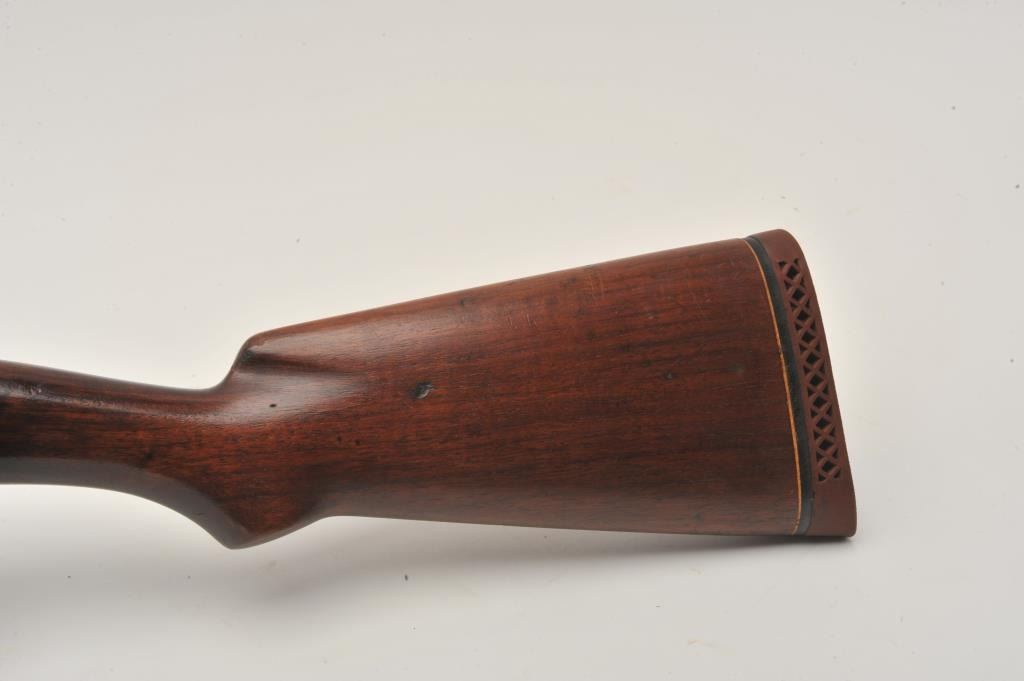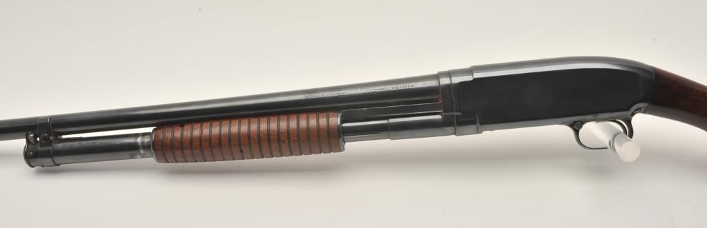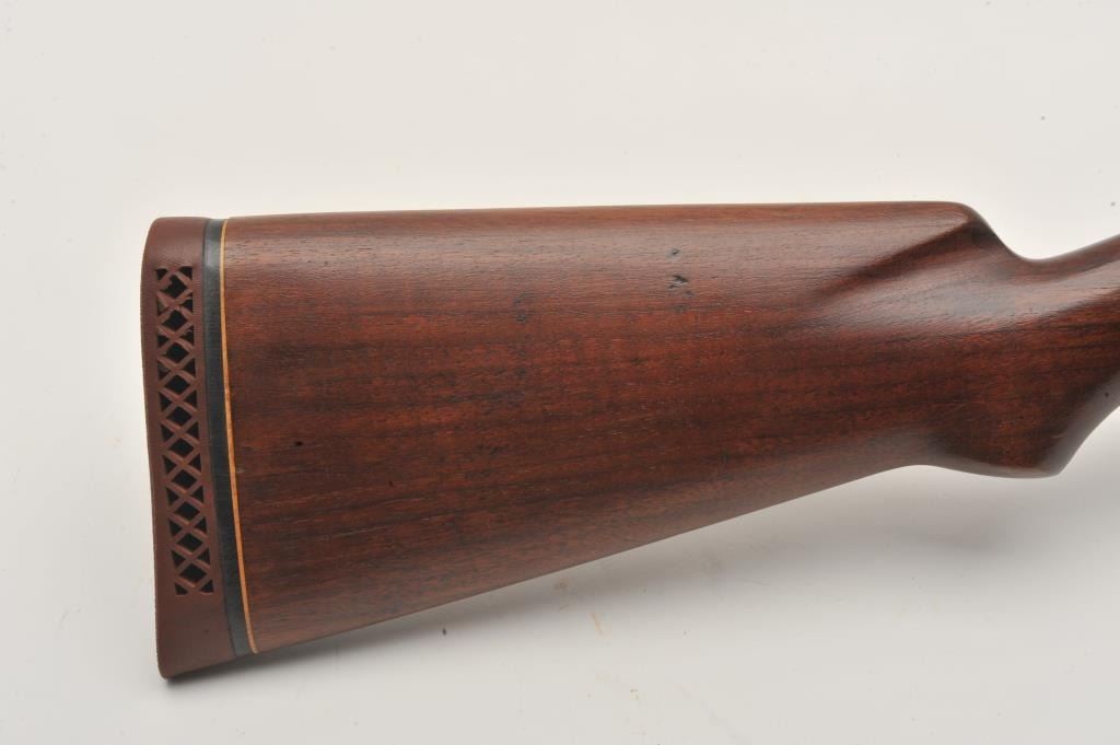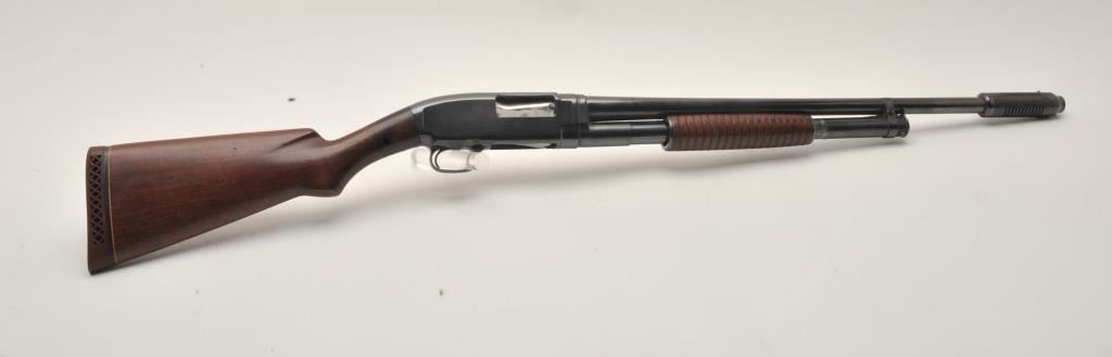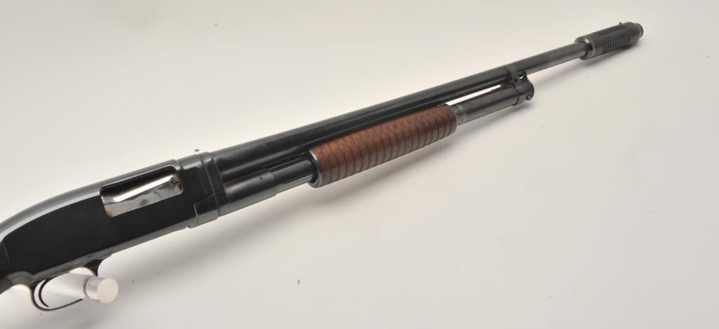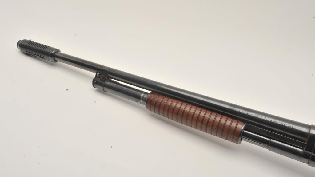 17ML-3 WINCHESTER MDL 1912 #48208Winchester Model 12 pump shotgun, 12 gauge, Serial #48208. The shotgun is in very good overall condition with a 26” barrel including the Cutts compensator. The barrel, magazine and receiver retain the majority of theirblue finish with handling and storage marks. The smooth wood stocks are in good condition with small mars and compressions; a social security number has been engraved behind the trigger guard. The butt ends with aventilated rubber pad providing a 13 ¾” LOP. The bore is fair and may clean, the action crisp and markings are sharp. Est.: $250-$500. (C+R).Winchester Model 12 pump shotgun, 12 gauge, Serial #48208. The shotgun is in very good overall condition with a 26” barrel including the Cutts compensator. The barrel, magazine and receiver retain the majority of theirblue finish with handling and storage marks. The smooth wood stocks are in good condition with small mars and compressions; a social security number has been engraved behind the trigger guard. The butt ends with aventilated rubber pad providing a 13 ¾” LOP. The bore is fair and may clean, the action crisp and markings are sharp. Est.: $250-$500. (C+R).
