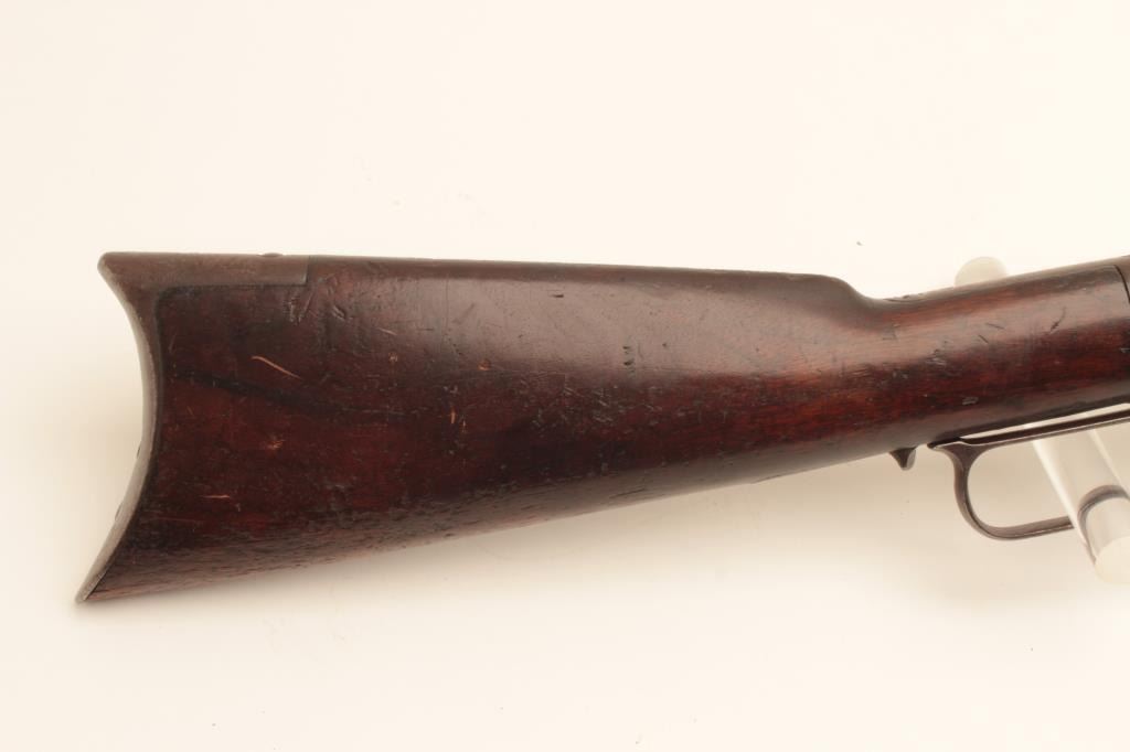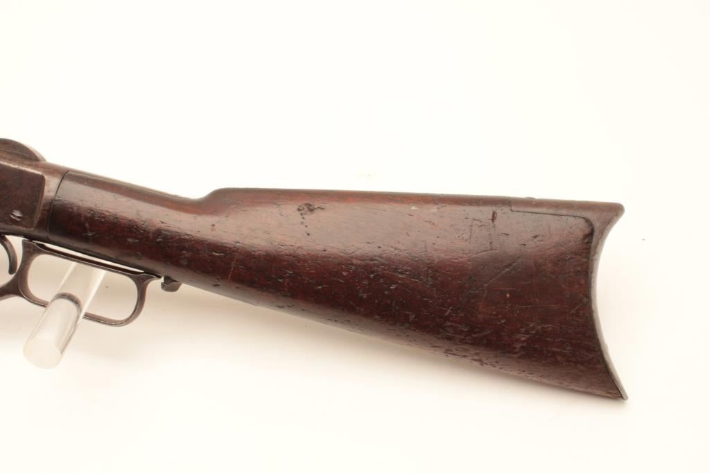 1873 Antique Winchester 38-40 caliber rifle with 24 inch octagon barrel, full mag, crescent butt, fair to good condition overall, some stock cracks with rust and erosion. Traces of finish and patina.#229467B Good condition and fine bore, original parts and dust cover. Est:$900-1800