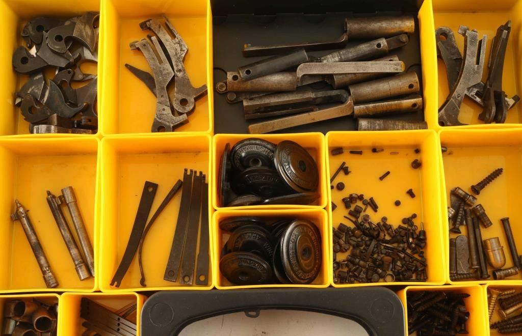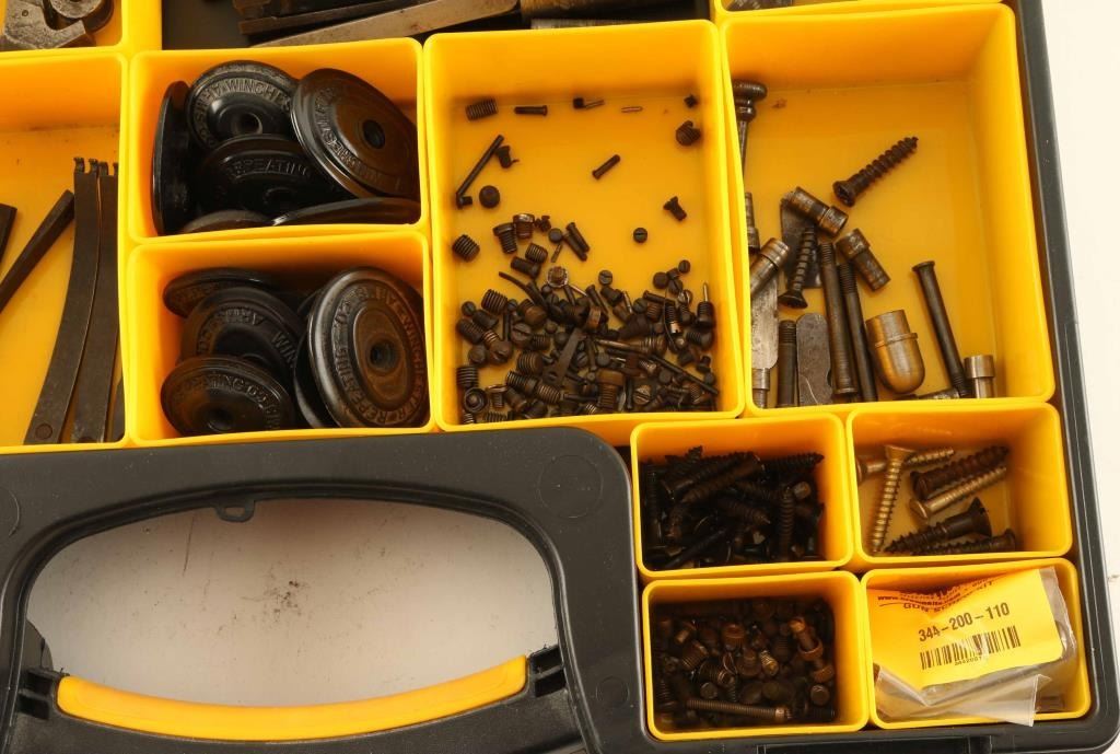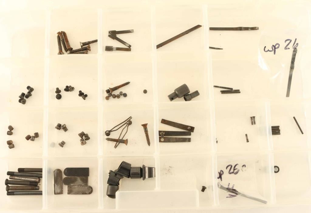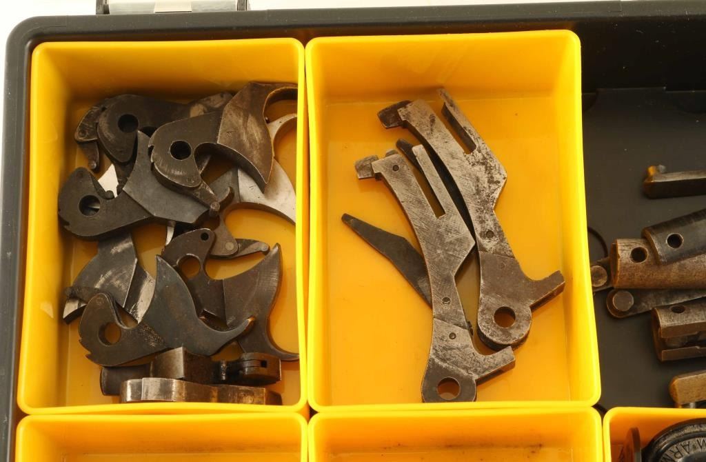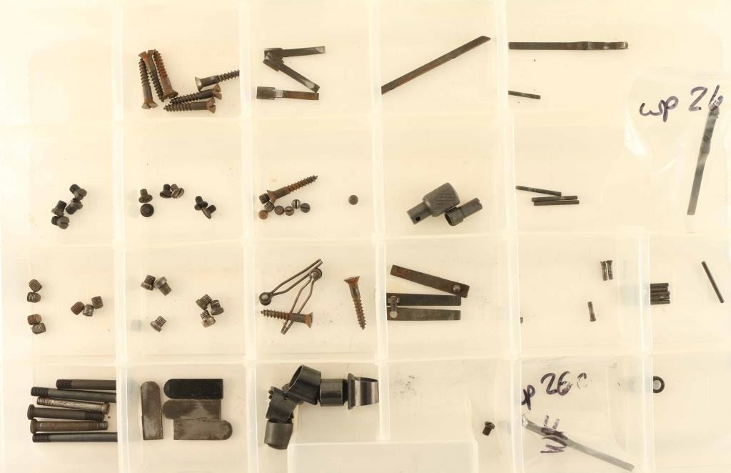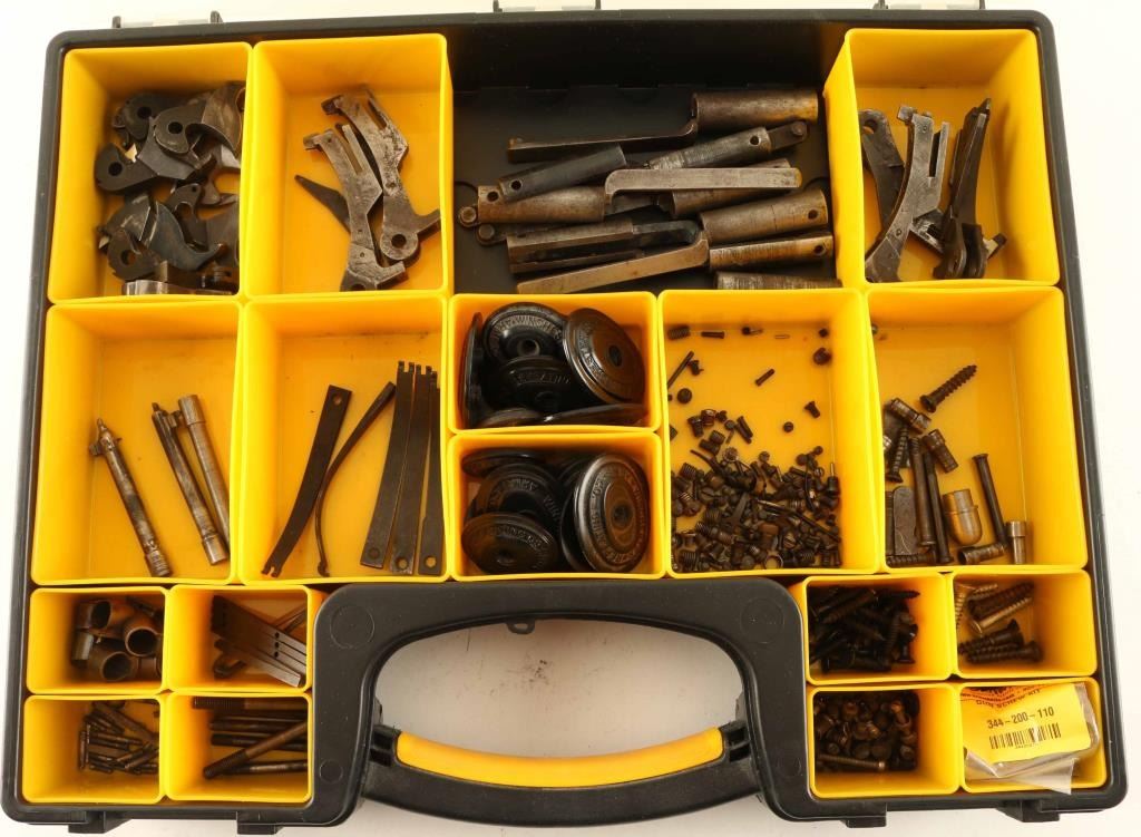 Three cases of misc. Winchester parts including screws, frames, actions,grip caps etc. See photos.