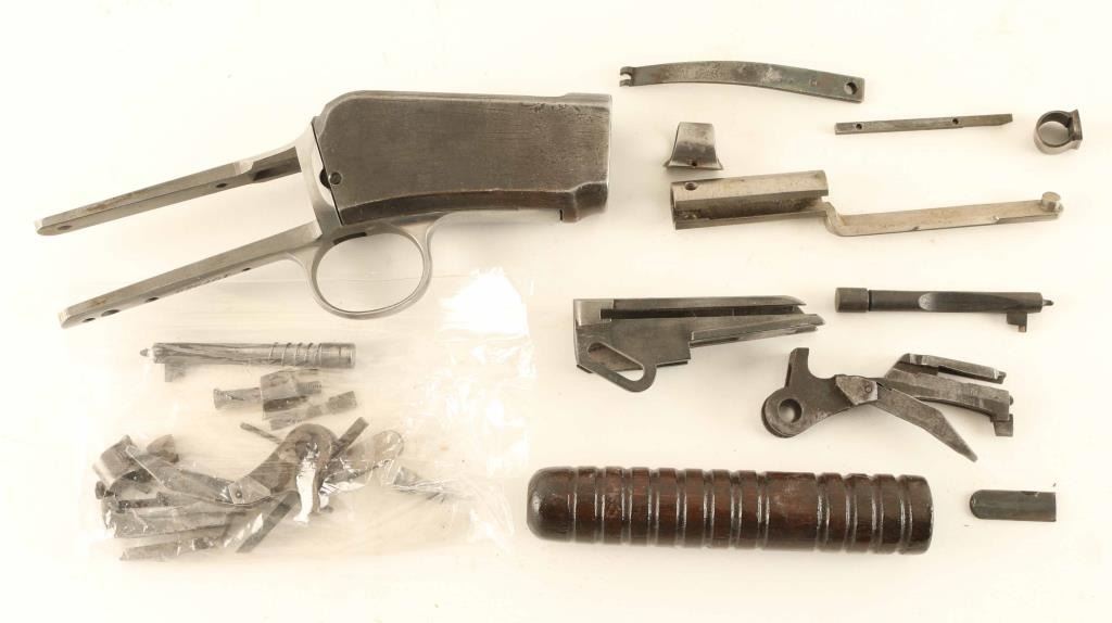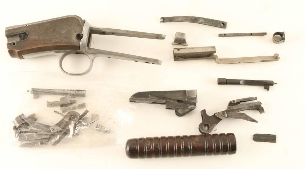 FAIR: Some major parts replaced; minor replacement parts may be required; metal rusted, may be lightly pitted all over, vigorously cleaned or re-blued; rounded edges of metal and wood; principal lettering, numerals and design on metal partly obliterated; wood scratched, bruised, cracked or repaired where broken; in fair working order or can be easily repaired and placed in working order.